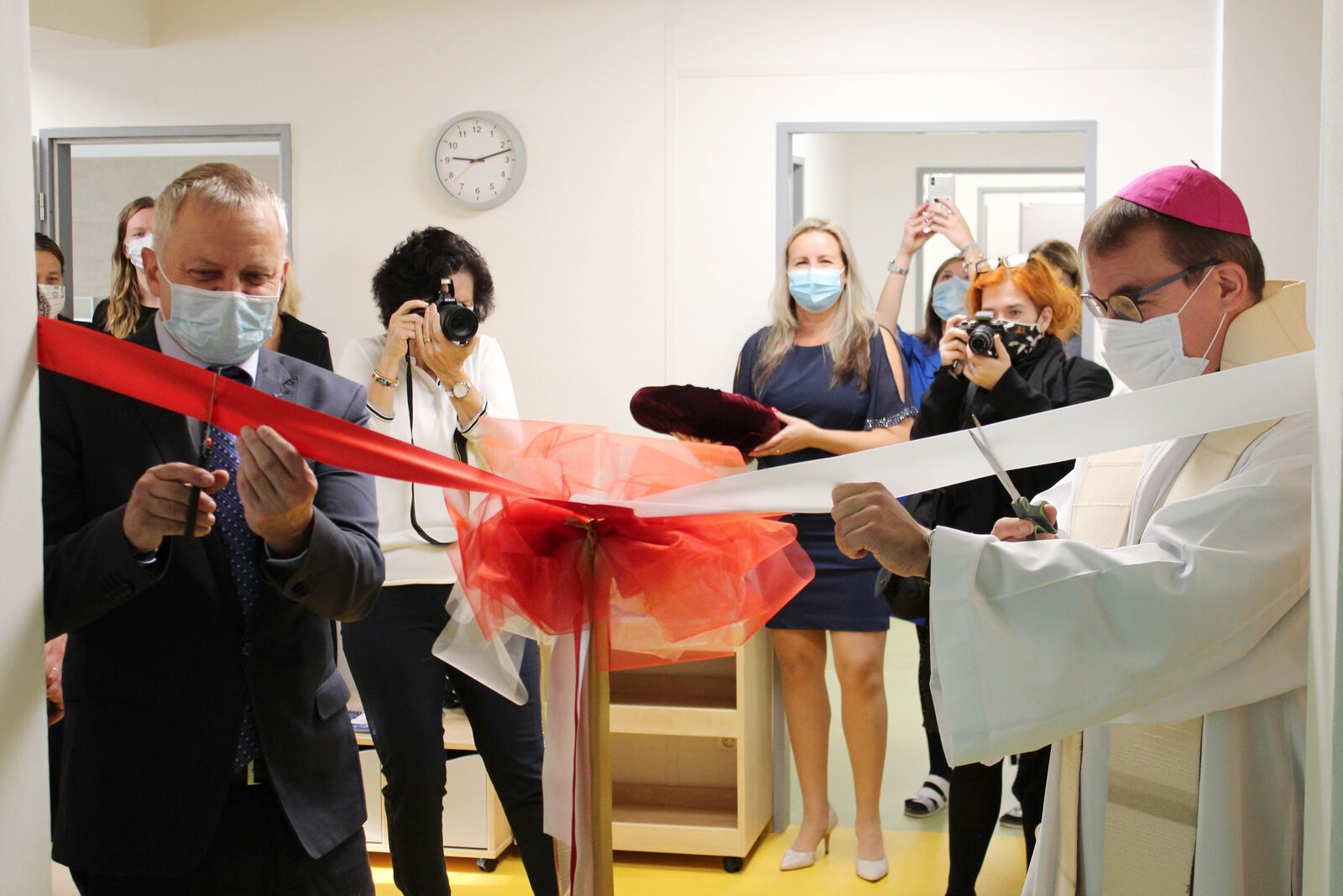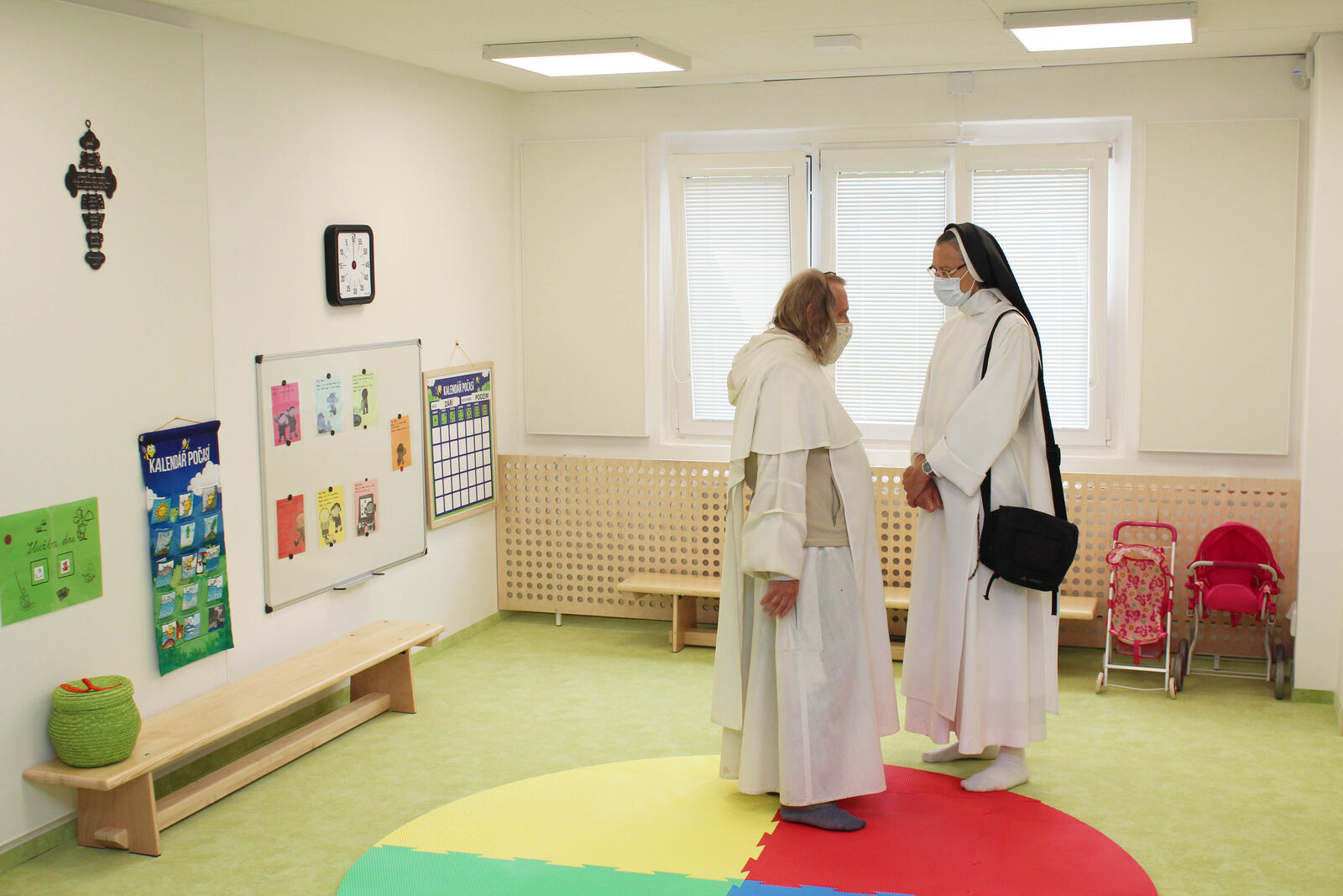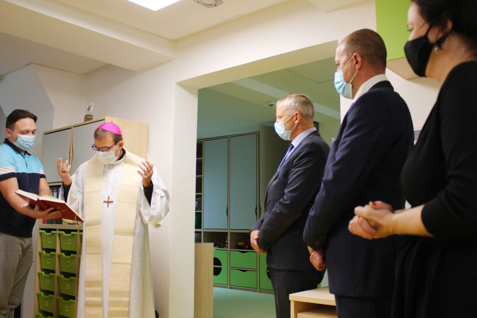 Rozšířené školce požehnal biskup Tomáš Holub.