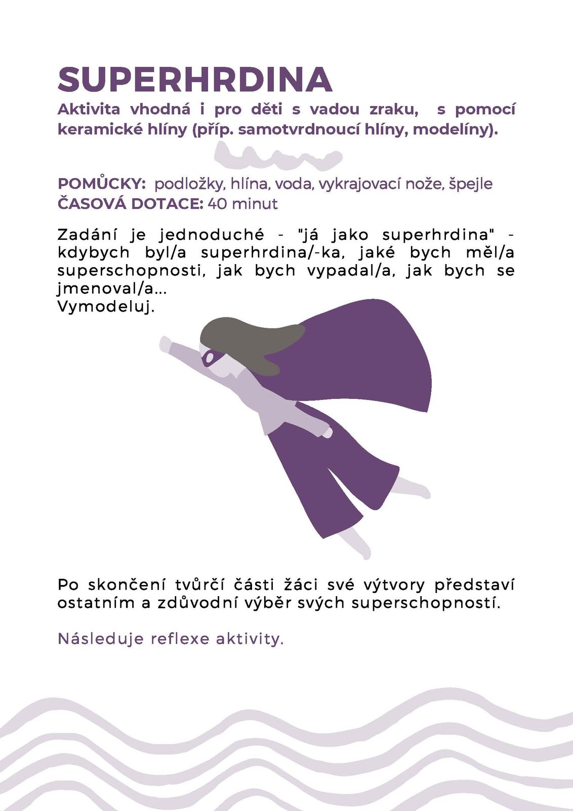 Pracovní listy žákům nabídnou zábavné aktivity, při nichž se nejprve navzájem představí ostatním a poté se začnou zamýšlet nad svými schopnostmi, nad vlastní budoucností, nad tím, co je baví, co se jim povedlo nebo co chtějí dokázat. Prokládají to tvořivé hry, jež díky různým variantám mohou hrát například i žáci s vadou zraku, či krátké pohybové aktivity. „Projekt má podporovat žáky se speciálními vzdělávacími potřebami, ale jednotlivé vzdělávací moduly jsou sestaveny tak, že se dají použít u všech žáků pro mapování jejich měkkých dovedností, jako jsou komunikační schopnosti, spolupráce, samostatnost, plánování nebo zvládání zátěže. U žáků se speciálními vzdělávacími potřebami ale bývá začleňování do pracovního procesu složitější než u žáků bez speciálních vzdělávacích potřeb, a proto jsme se zaměřili především na ně,“ pokračuje Jana Krunclová.