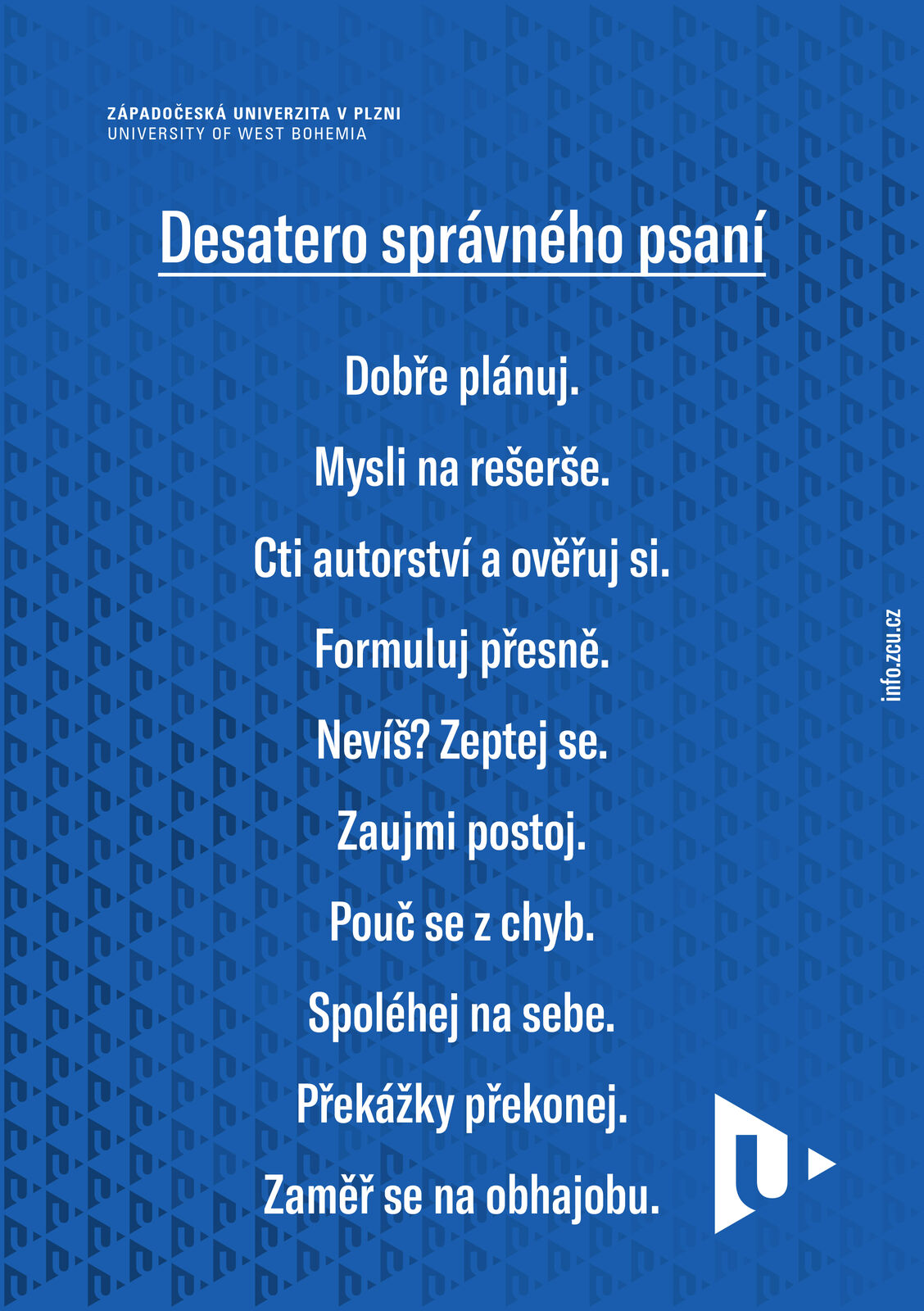 Jak při rešerších správně postupovat, abyste se v záplavě informací neztratili, vám poradí předmět Vědecké informace, který si na ZČU můžete zapsat. V něm se seznámíte se zásadami psaní odborných kvalifikačních prací, včetně základů rešeršní strategie. Dozvíte se, jak vyhledávat informace na internetu nebo v elektronických informačních zdrojích a také si osvojíte citační normy. Co na to říkáte? Je bezpochyby lepší, zjistit tohle všechno včas, než se v rešeršních strategiích a zásadách citování topit při psaní práce. Ušetří vám to spoustu nervů a bezesných nocí.
