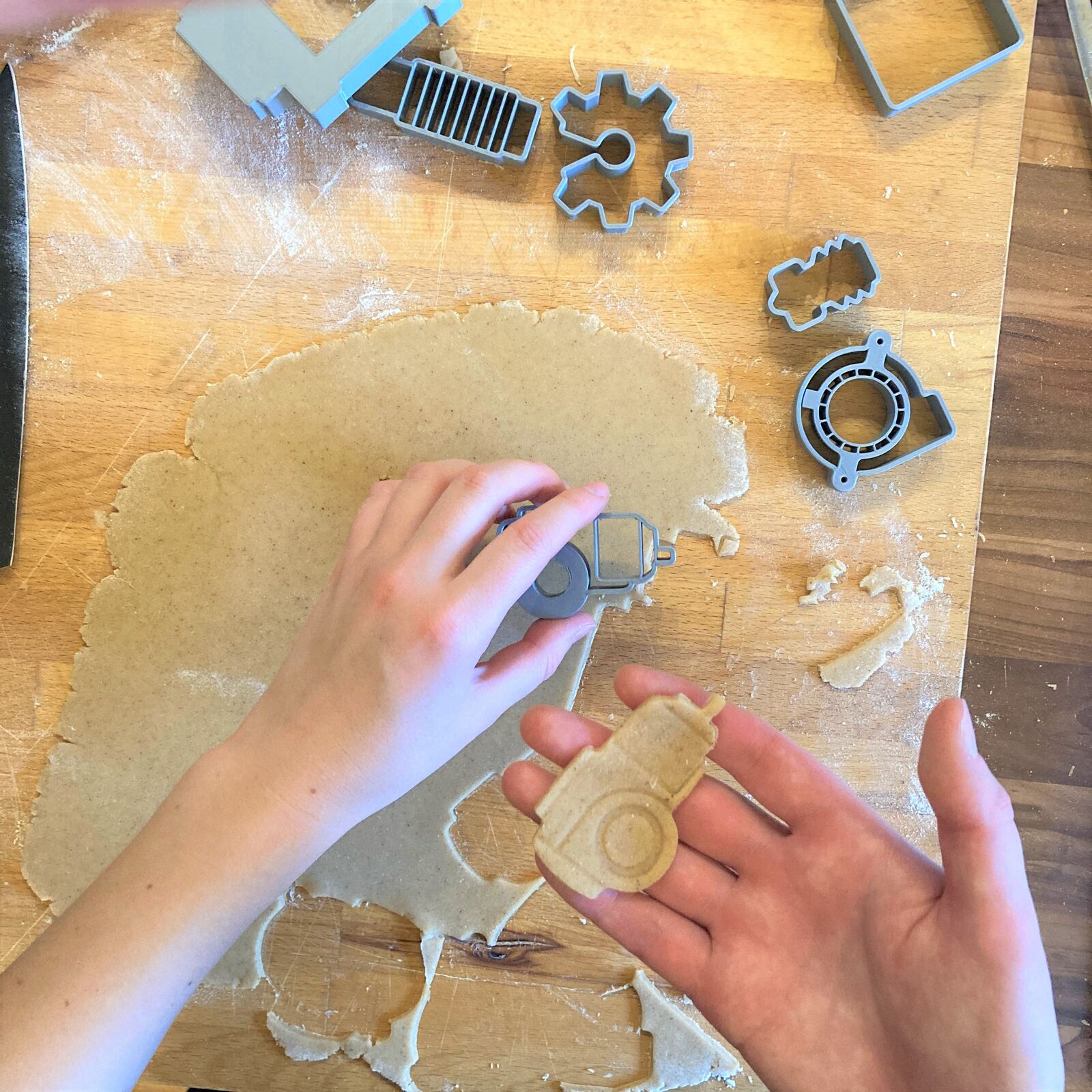 „Vyrobená vykrajovátka jsme pak rozeslali studentům domů, kde pomocí svých formiček vyráběli cukroví,“ dodává Jan Korabečný. Například Jonáš Baierl z ateliéru Design modelling navrhl sadu vykrajovátek s šumavskou tematikou pro projekt WeLoveŠumava. Společně s jeho zástupci pak napekli a rozvezli cukroví do domovů seniorů, záchranářům, hasičům a zdravotníkům v šumavském regionu.