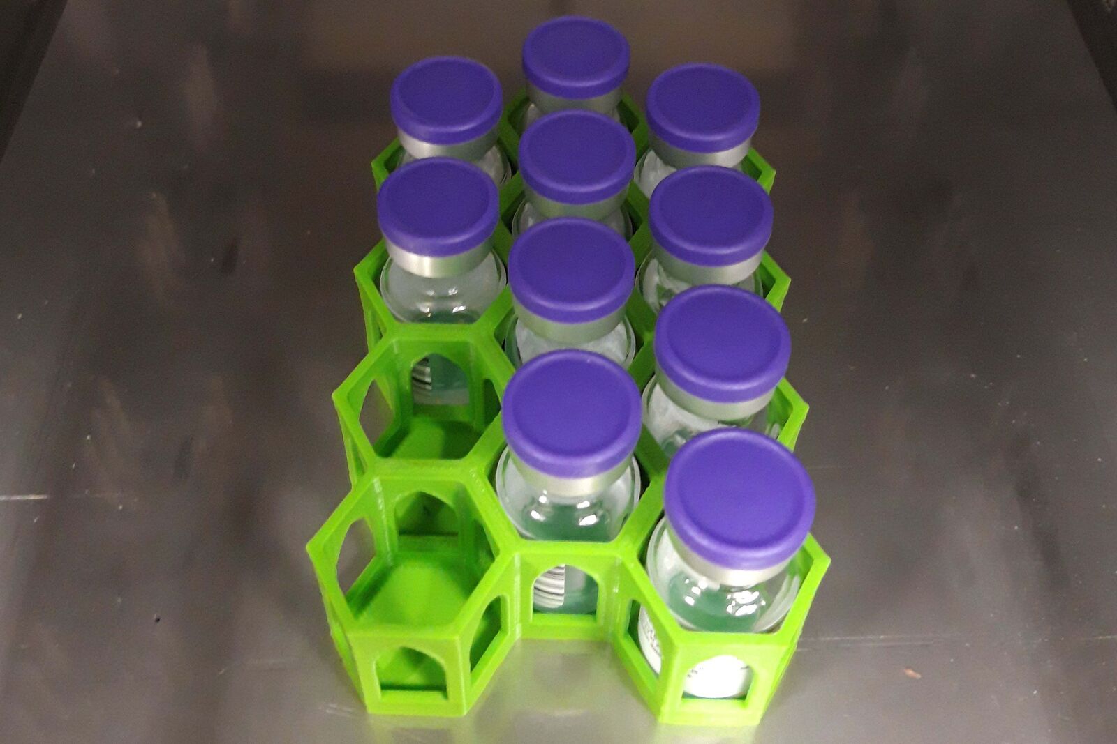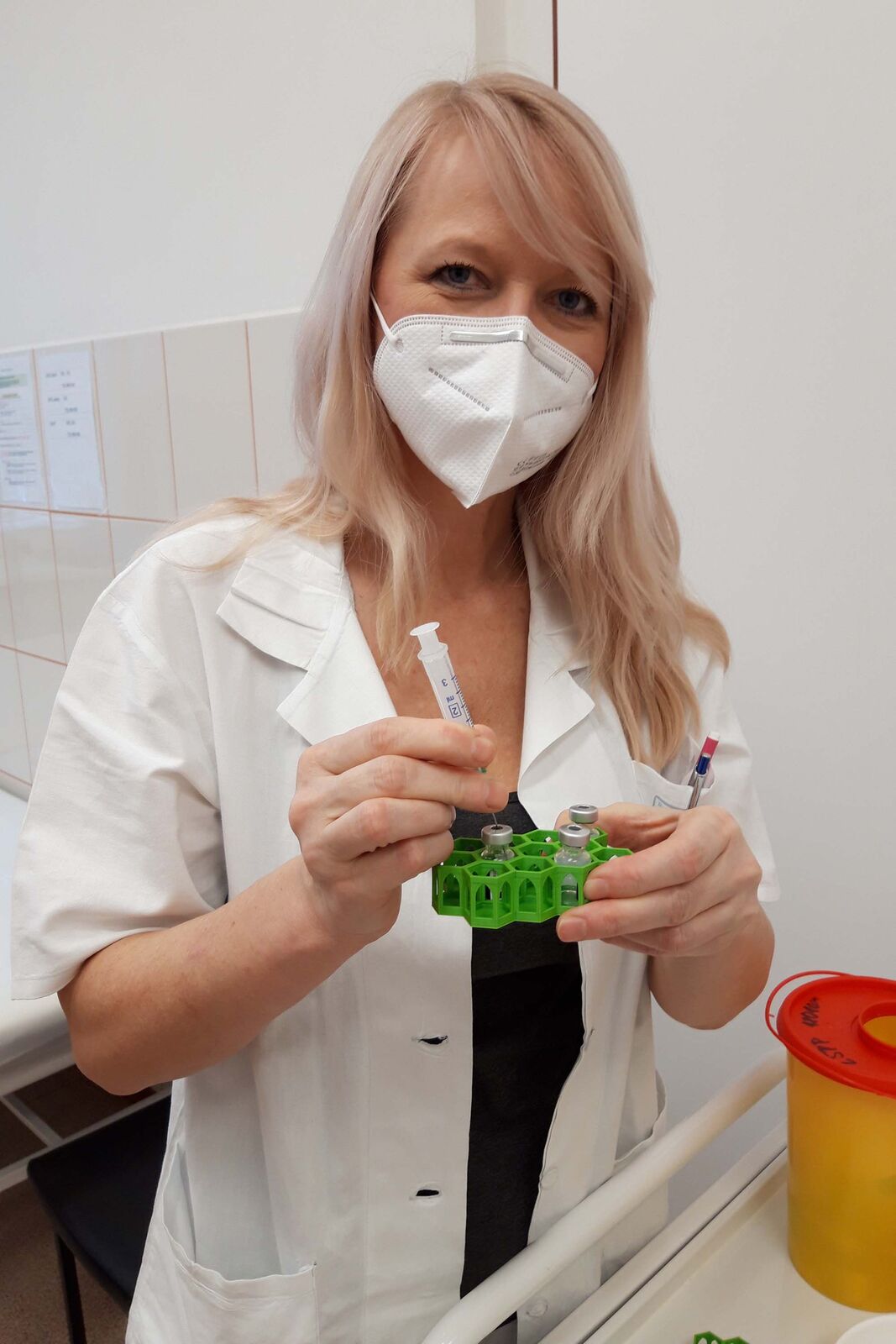 Lahvička je celou dobu chráněna i proti převrhnutí, což je důležité pro zachování kvality séra, která se s případnými otřesy snižuje. Držák tak fixuje lahvičku ve vertikální poloze a celkově usnadňuje správné zacházení s vakcínou od jejího vyzvednutí v mraženém stavu až do okamžiku aplikace.