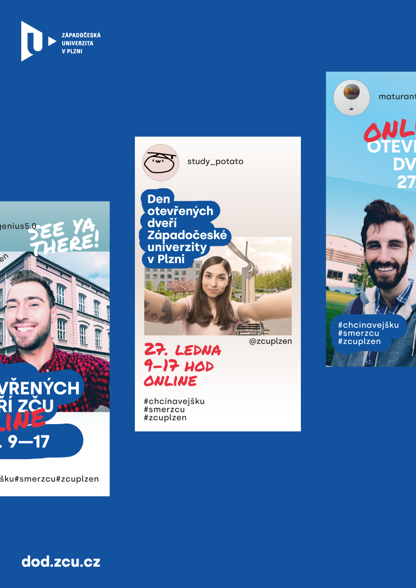 Online verze Dne otevřených dveří přinese uchazečům univerzitu až k nim do pokoje. Nepřijdou o rozhovory s vyučujícími, zkušenosti současných studentů ani o prohlídku kampusu, samozřejmě virtuální. Úplně poprvé se tak letos na Dni otevřených dveří představí všechny fakulty ZČU v jednom termínu. Pro zájemce o studium v chebské části Fakulty ekonomické je připraven živý přenos už na pátek 22. ledna od 11 hodin, potřebné informace však získají i ve středu 27. ledna. Fakulta designu a umění Ladislava Sutnara sice z důvodu dřívějšího data pro podávání přihlášek do bakalářských programů a talentových zkoušek pořádá svůj Den otevřených dveří každoročně v listopadu, ale nevynechá ani lednový termín, užitečný především pro uchazeče o magisterské studium.