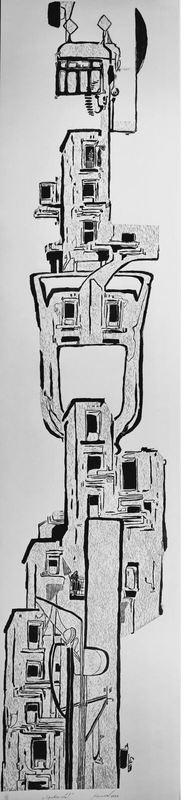 Markéta Knorová – Sprchni už!, linoryt, velikost listu 3395 x 757 mm, vedoucí ateliéru prof. akad. mal. Mikoláš Axmann