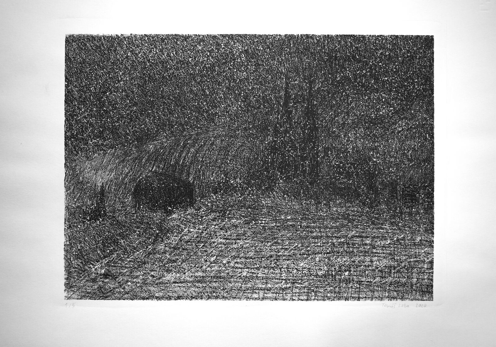 Tomáš Leba – Tma, litografie, velikost listu 344 x 488 mm, vedoucí ateliéru prof. Mikoláš Axmann