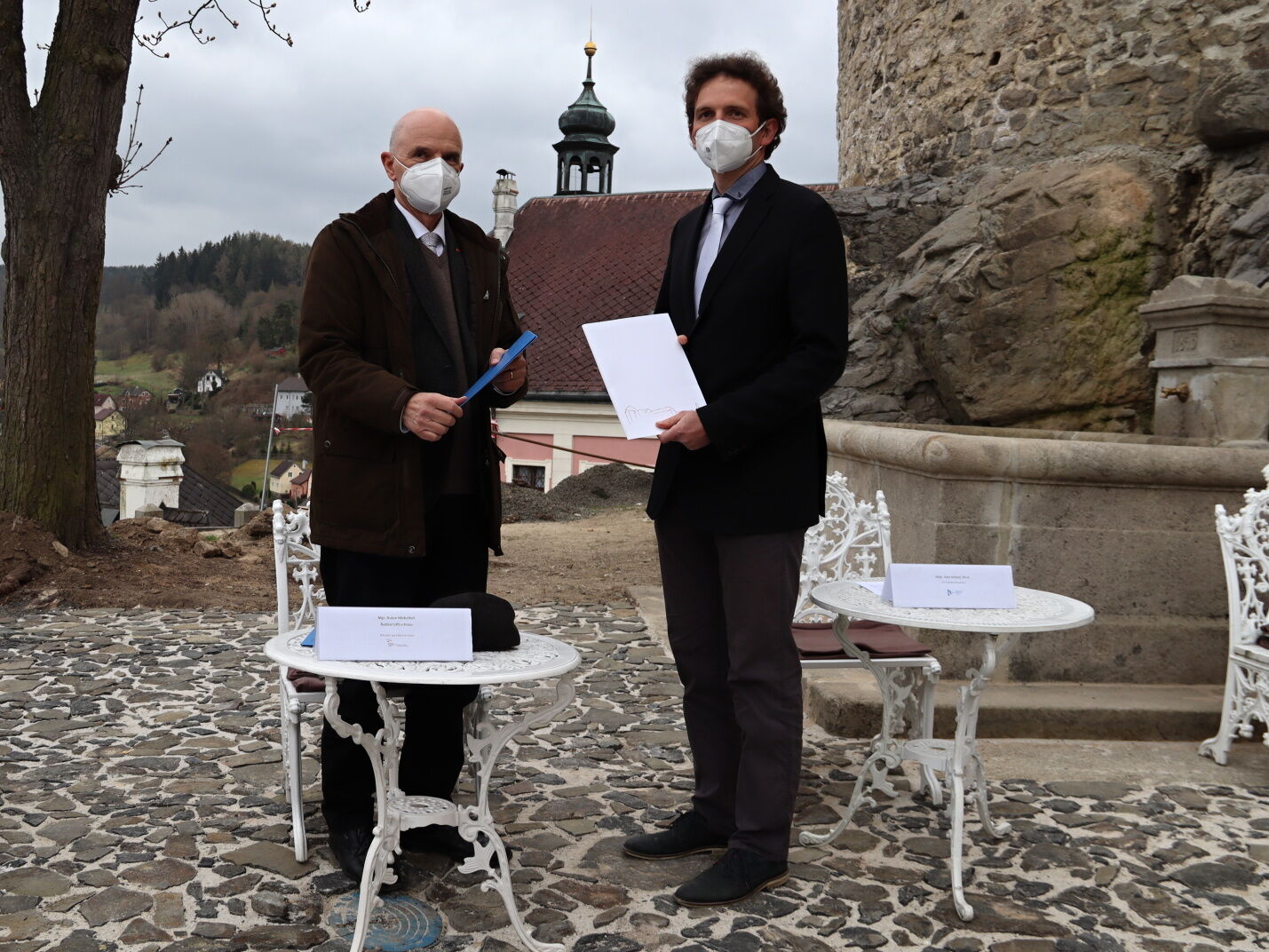 Zleva ředitel Územní památkové správy v Praze NPÚ Dušan Michelfeit a Petr Krištuf z Fakulty filozofické ZČU.