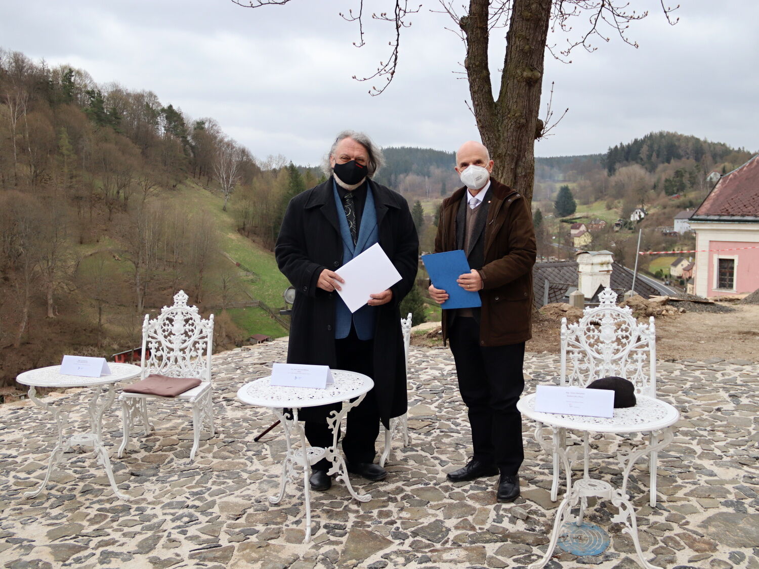 Zleva děkan Sutnarky Josef Mištera a ředitel Územní památkové správy v Praze NPÚ Dušan Michelfeit.