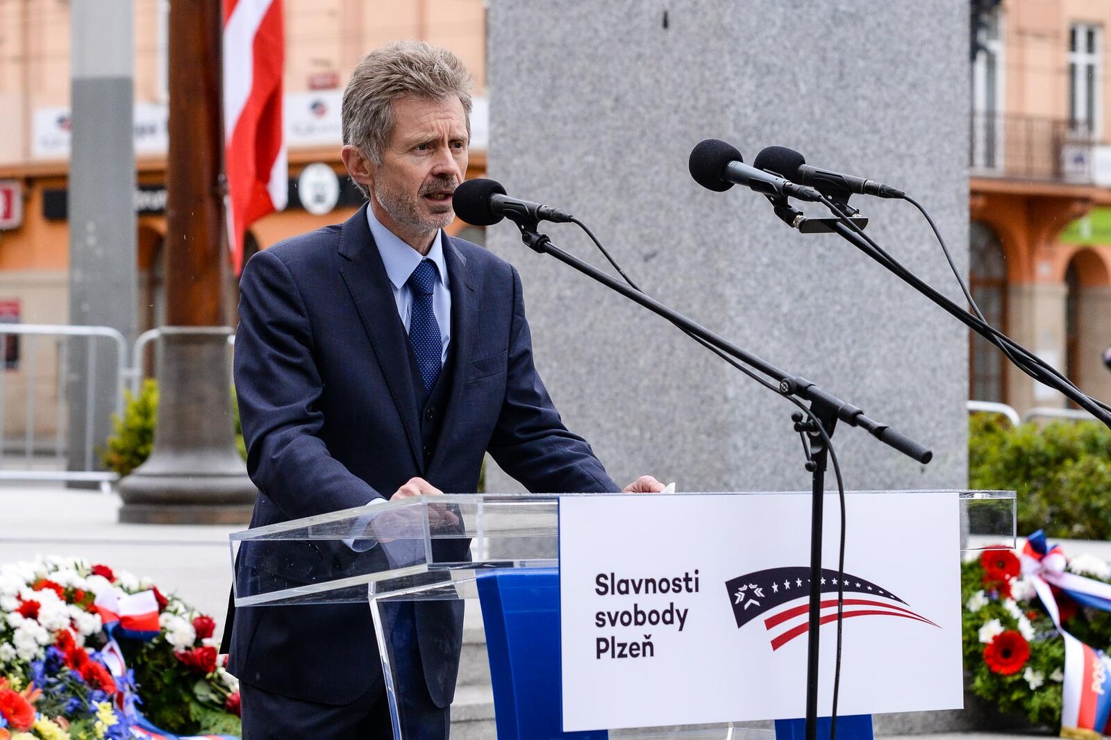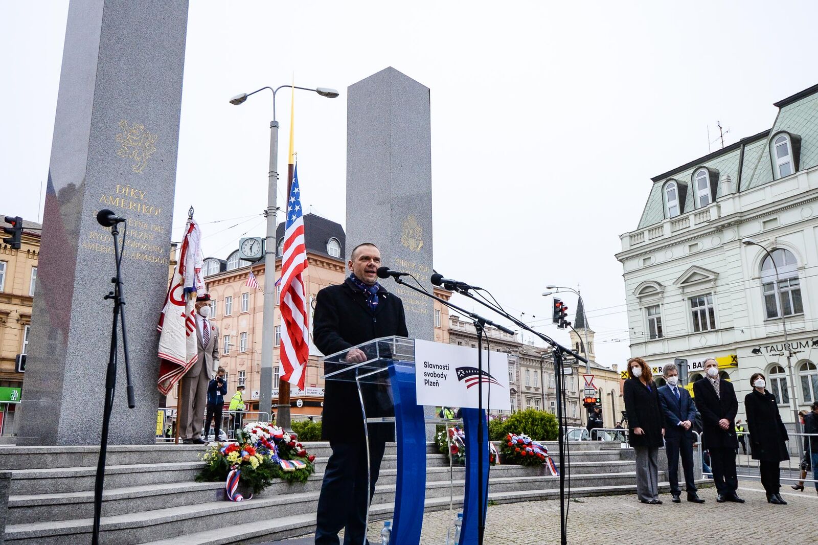„Navzdory omezujícím podmínkám Slavnosti svobody pořádáme již podruhé v jiné podobě, než jsme byli zvyklí, avšak stále se základním posláním: poděkovat a vzpomenout na ty, kteří se o naši svobodu zasloužili. Vzpomenout na všechny ty ‚obyčejné‘ lidi ze vzdáleného kontinentu, kteří neváhali nasadit za naši svobodu svůj život. Vzali do rukou zbraň a vyrazili do vzdálené Evropy, a nakonec i do Plzně, aby jí navrátili svobodu. Mnohým americkým rodinám, ale i rodinám ze spojeneckých zemí, přišlo oznámení, že jejich blízcí se už do svých domovů nikdy nevrátí. A mnozí z těch, kteří přežili, si do života odnesli následky zranění a psychická traumata z prožitého válečného utrpení. Plzeňské Slavnosti svobody proto byly, jsou a budou oslavou právě těchto ‚obyčejných‘ lidí, oslavou a uznáním jejich statečnosti, utrpení a hrdinství ve jménu svobody,“ uvedl ve svém projevu u Díky, Ameriko! primátor města Plzně Martin Baxa. Současně vyjádřil hlubokou lítost nad tím, že veteráni nemohou být letos osobně přítomni na oslavách osvobození, na dálku je však jménem všech Plzeňanů přivítal prostřednictvím on-line přenosu.