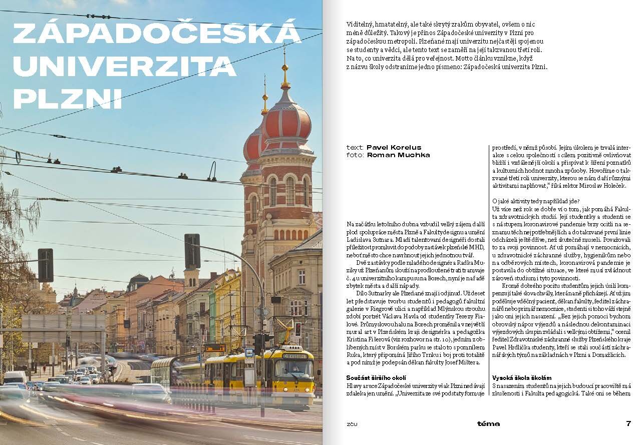 Hlavní téma tentokrát seznámí čtenáře s tím, jak Západočeská univerzita přispívá životu v Plzni, a představí ji jako stále živý zdroj nápadů, které se dobře ujaly v praxi a bez nichž by to už pravděpodobně ani nešlo. Spolupráci akademického prostředí s veřejností se věnuje také rozhovor s vedoucí Ateliéru grafického designu a vizuální komunikace Fakulty designu a umění Ladislava Sutnara Kristinou Fišerovou. Další výraznou osobností, kterou "Z" veřejnosti přibližuje, je děkan Fakulty právnické Stanislav Balík.