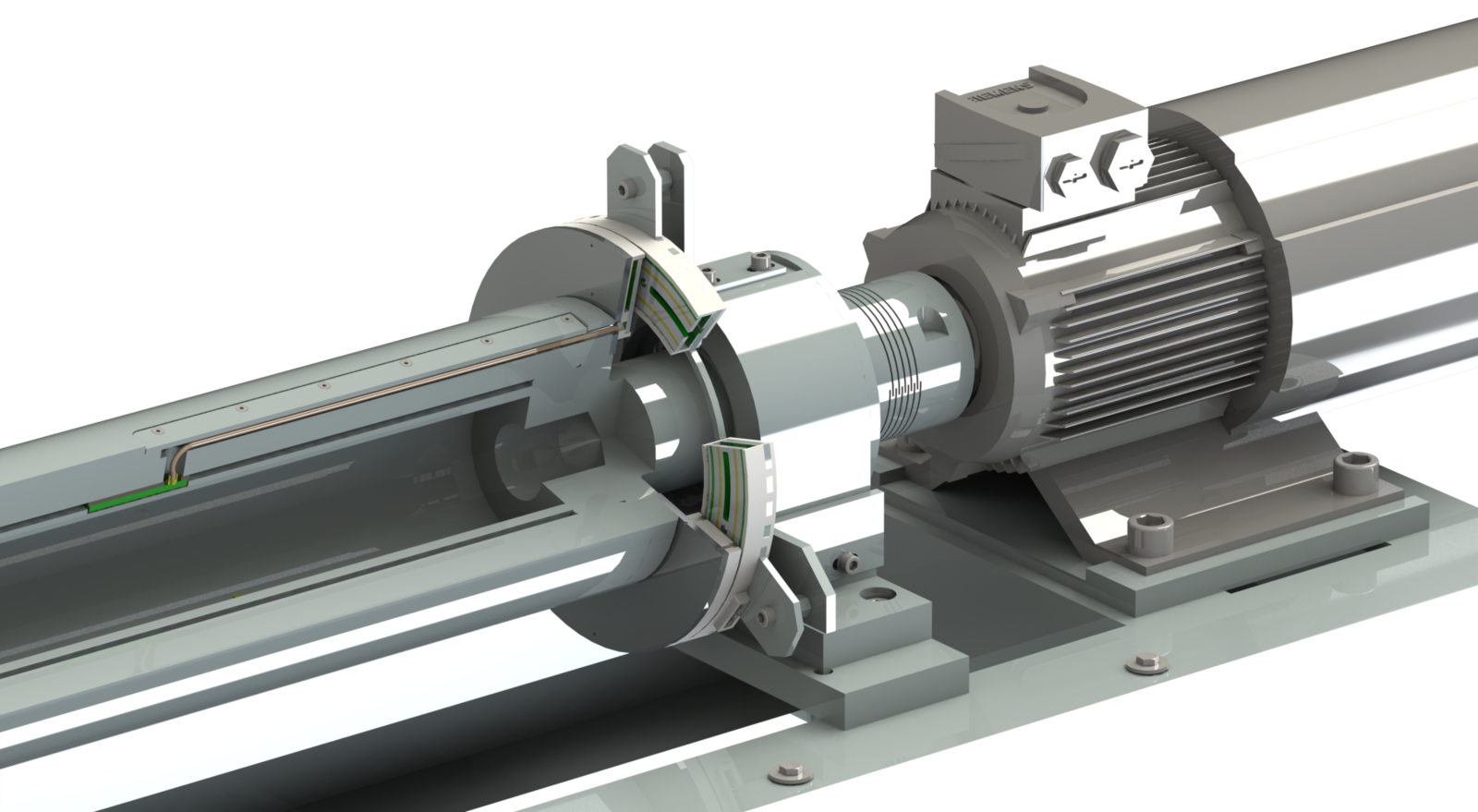 The sets of sensors on the rotating part of the machine need to be supplied with electrical power, and at the same time, the measured data needs to be retrieved from them. The transfer of energy and data between the rotary and stationary parts of the machine is done wirelessly but can also be done by contact. The acquired data is fed into the machine control system during machining and used to compensate for inaccuracies caused by thermal expansion.