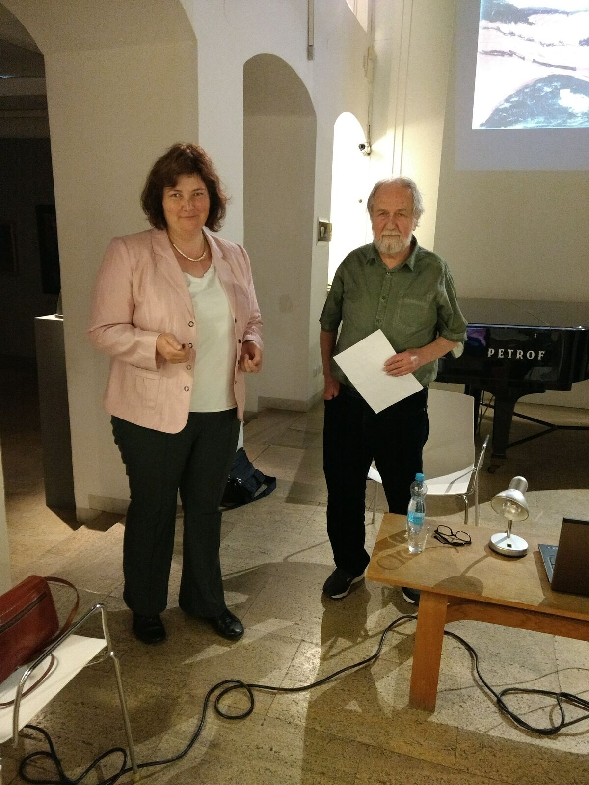 Jaroslav Bláha a Věra Uhl Skřivanová před přednáškou v Masných krámech.