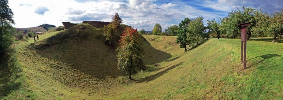 během probíhajícího archeologického výzkumu. Podlouhlý zemní násep byl zpevněn
