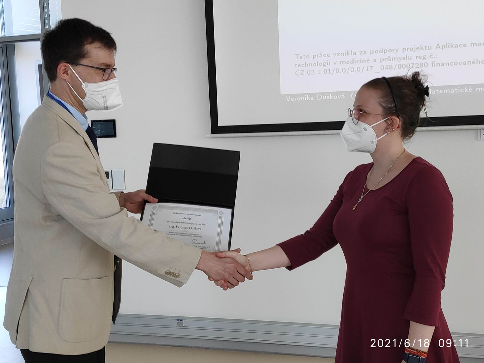z rukou předsedy České společnosti pro biomechaniku profesora Matěje Daniela. „Veronika Dušková