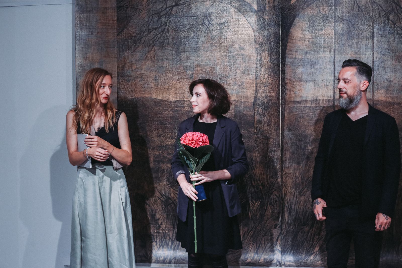Slavnostní vernisáž výstavy otevřela tajemnice a ředitelka soutěže Grafika roku Kateřina Obozněnková spolu s kurátorem Galerie Ladislava Sutnara Janem Van Woenselem