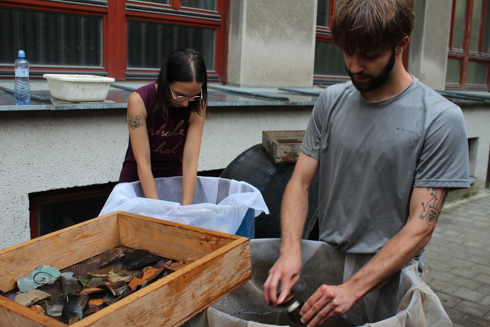 vyzvednutá v průběhu dvou etap archeologického výzkumu na dvoře budovy Fakulty