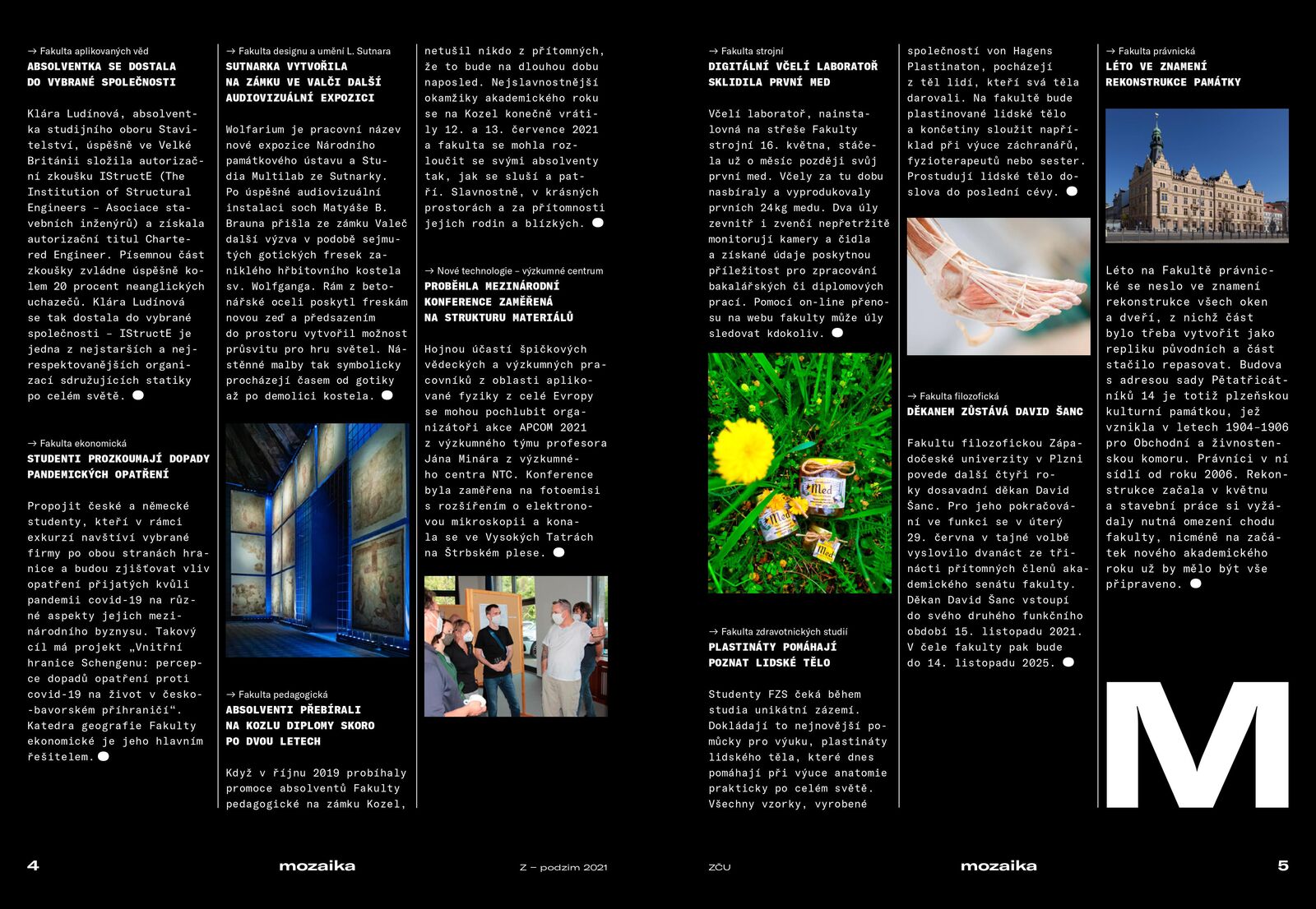 Spolu s historií ovšem stránky podzimního Z zaplnila také současnost. Kromě těch nejzajímavějších zpráv z univerzitních součástí představujeme v rubrice Osobnost ZČU profesora Jána Minára z výzkumného centra NTC, v rubrice Projekt ZČU zase Plzeňské fakultní školy. Stranu studentské tvorby jsme tentokrát vyhradili hudbě.