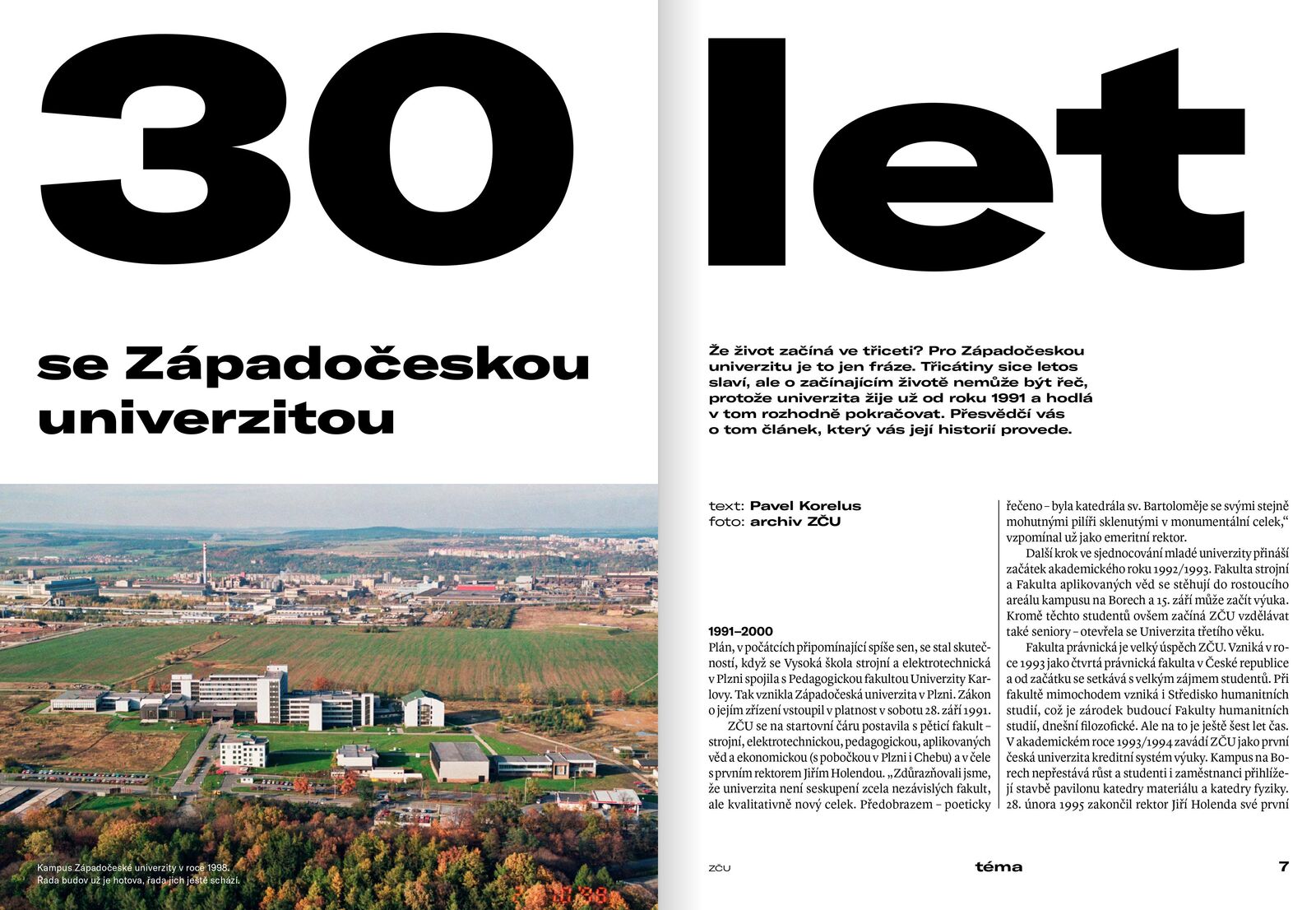 30 let Západočeské univerzity je téma, které bude rezonovat celým nadcházejícím akademickým rokem. Tvoří rovněž kostru nového, v pořadí třetího čísla univerzitního časopisu Z. Na jeho stránkách vás pozveme na procházku historií ZČU a seznámíme s jejími zásadními momenty i s jejími prvními absolventy. S výročím souvisí také pozvánky na jeho oslavy, především na celodenní festival Den v kampusu 21. září.
