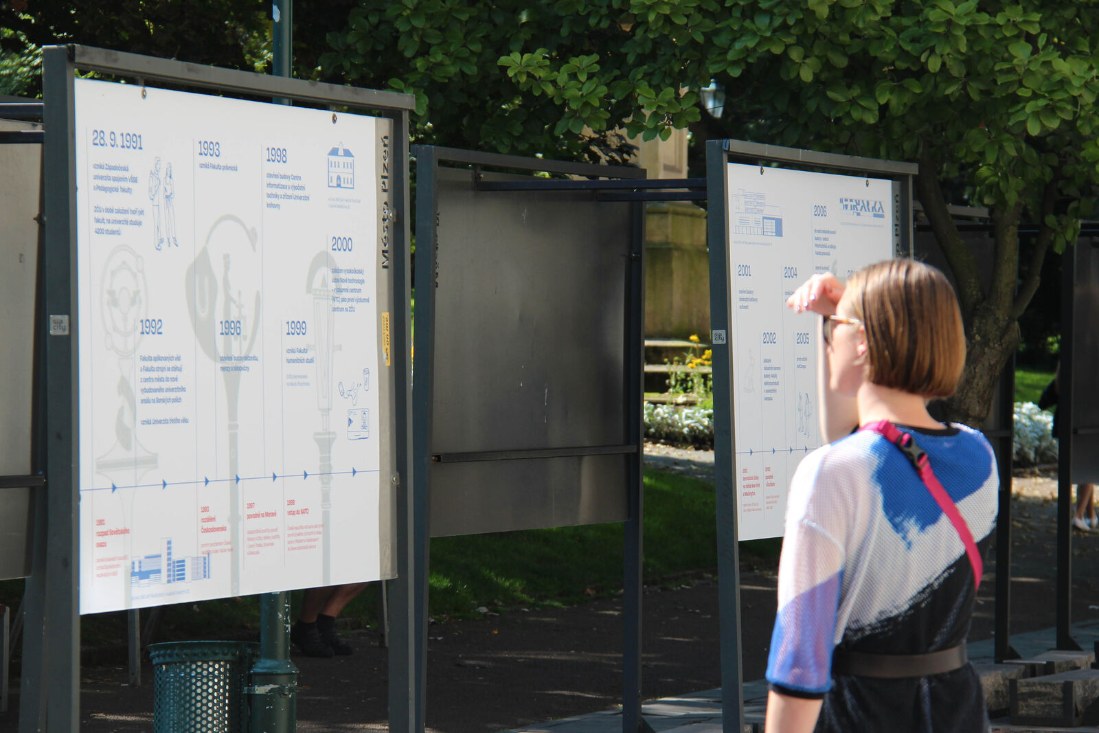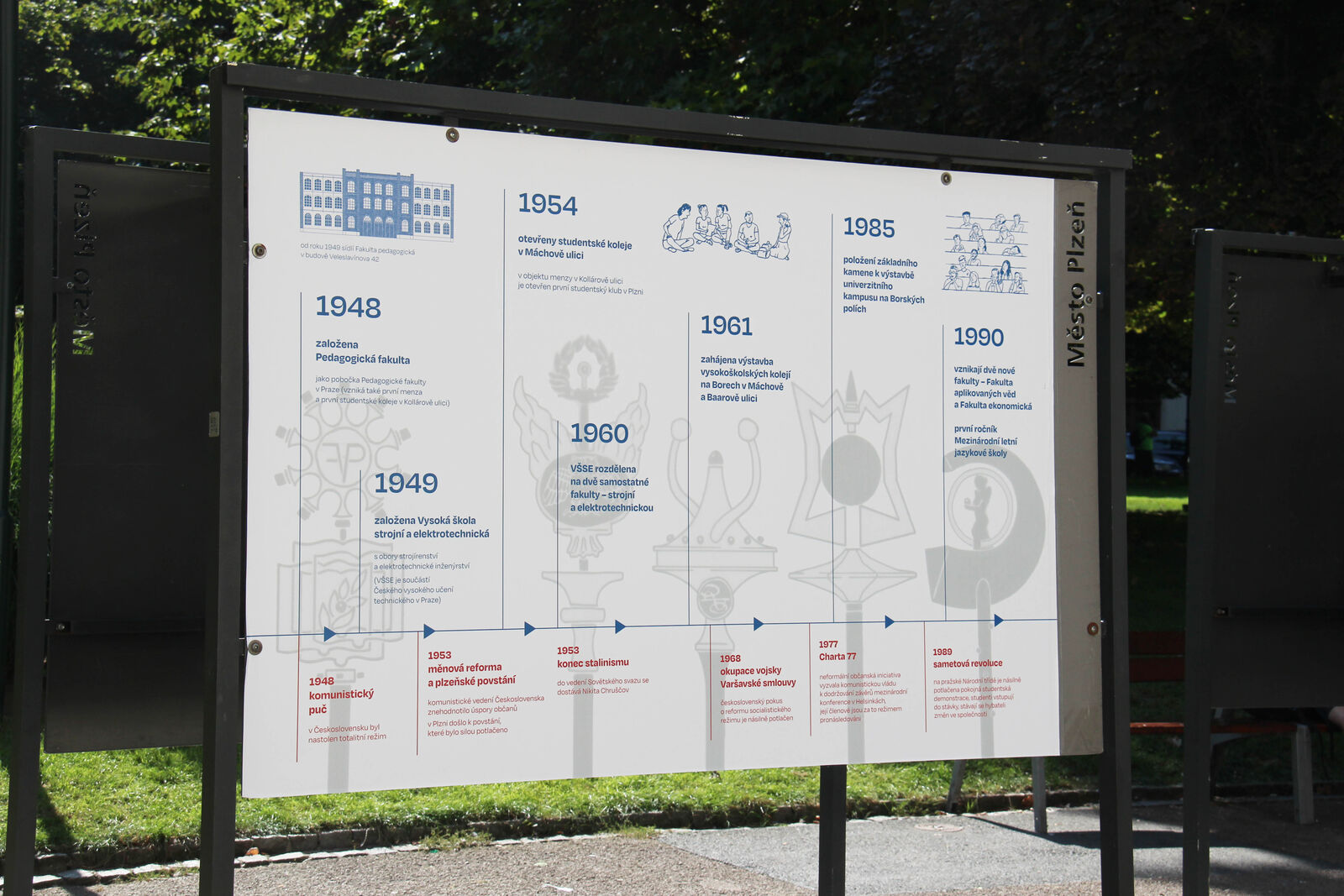 Na výstavních panelech je k vidění výtvarně zpracovaná časová osa, která rekapituluje a do širšího společenského kontextu zasazuje nejen nejdůležitější mezníky uplynulých třiceti let života univerzity, ale i události z doby před jejím vznikem, kdy v Plzni působila Vysoká škola strojní a elektrotechnická a Pedagogická fakulta. Součástí výstavy jsou také portréty pěti dosavadních rektorů ZČU. S vybranými úspěchy fakult, výzkumných center a vysokoškolských ústavů se lidé mohou seznámit díky krátkým komiksovým příběhům.