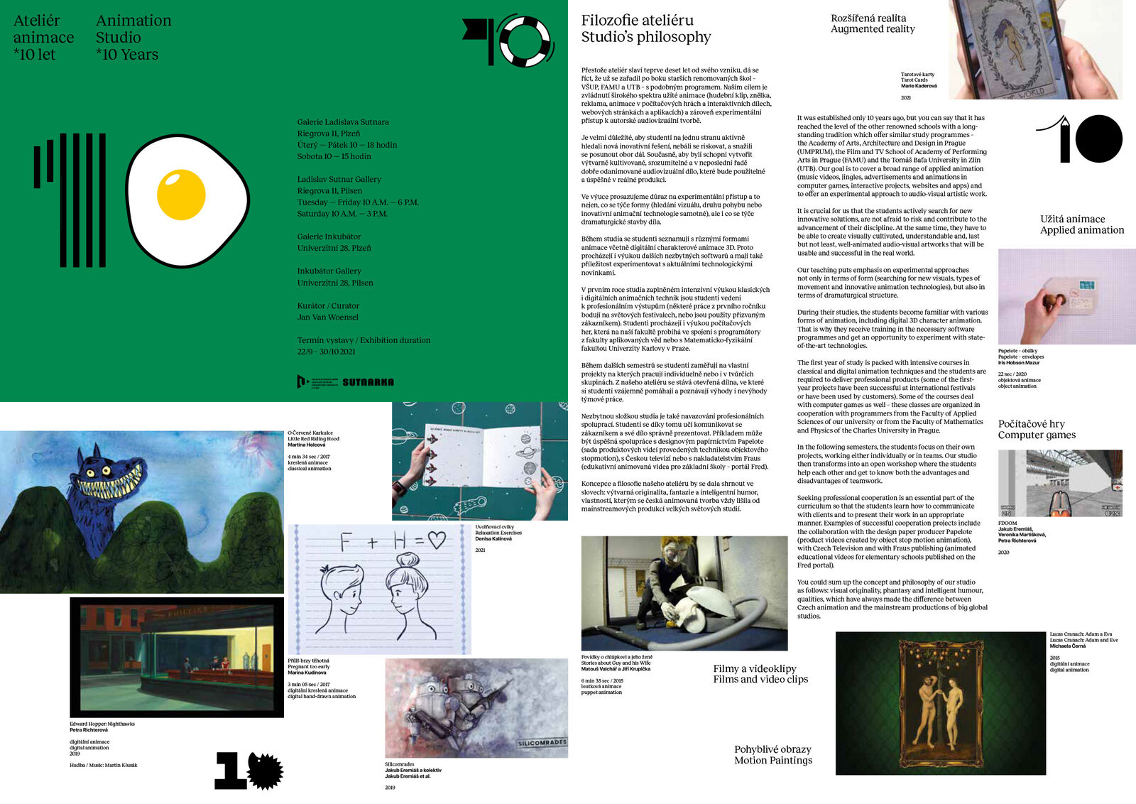 moci prohlédnout jak v Galerii Ladislava Sutnara, tak i v budově Fakulty designu a umění Ladislava Sutnara v prostoru Galerie Inkubátor. K vidění budou filmy a
