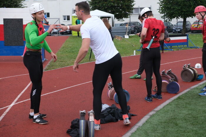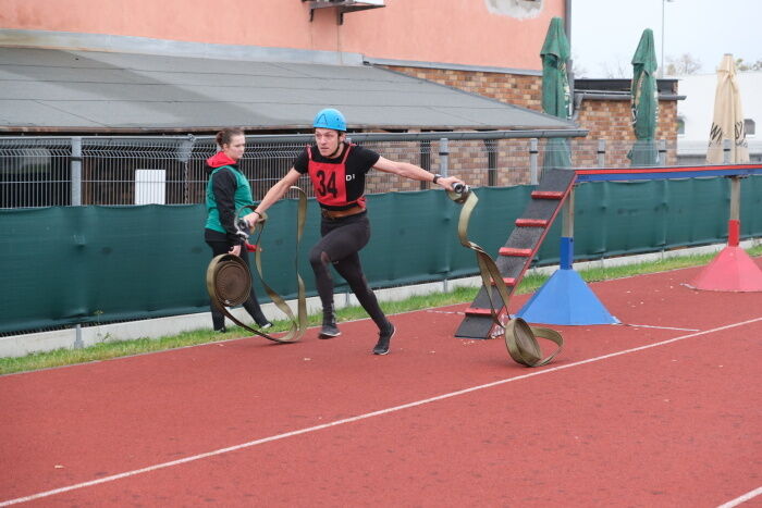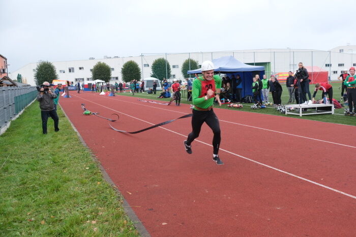 podlaží, ženy do druhého) a 100 metrů s překážkami. Disciplíny štafeta a požární
