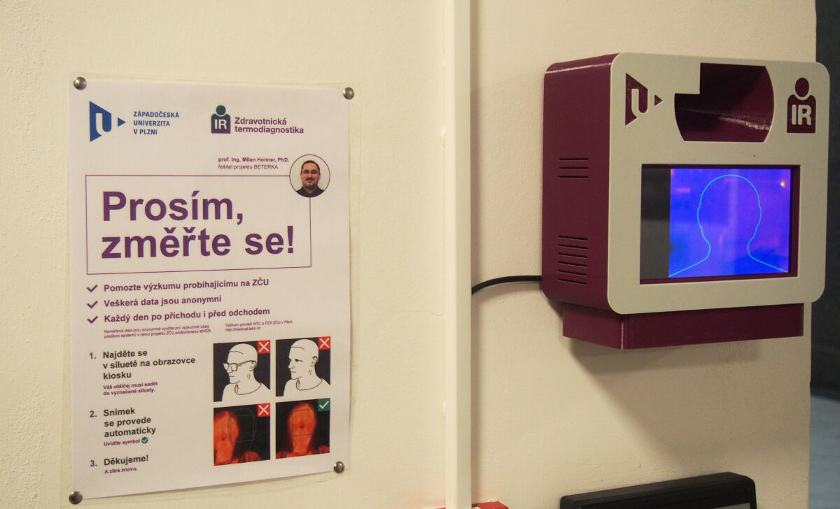 Speciální zařízení pro termovizní měření osob vyvinuli vědci z výzkumného centra NTC spolu s kolegy z Fakulty zdravotnických studií při projektu BETERKA podpořeném Ministerstvem vnitra ČR. Termokamera umístěná ve foyer Krajského úřadu bude data sbírat do konce roku 2022, anonymizovat je a přenášet na server ZČU stejně jako data ze zařízení v budovách dalších institucí a na místech s větší koncentrací lidí - od začátku listopadu například v prostorách Střední průmyslové školy strojnické.