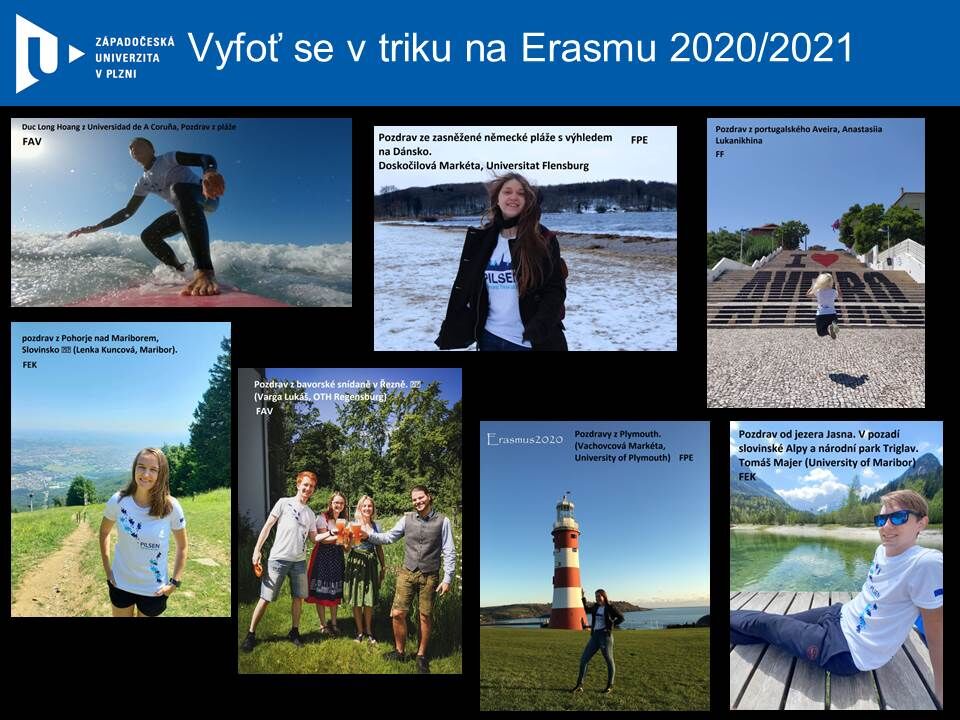 Studenti, kteří byli v minulém akademickém roce v zahraničí, předávali těm, kteří zvažují či plánují stáž, své zkušenosti, dojmy, zážitky a praktické informace z pobytu v zahraničí jako know-how. Hlavní cenou soutěže Vyfoť se v triku na Erasmu byl poukaz na cestování Českými drahami a získal ho student FAV Duc Long Hoang z pobytu ve Španělsku.