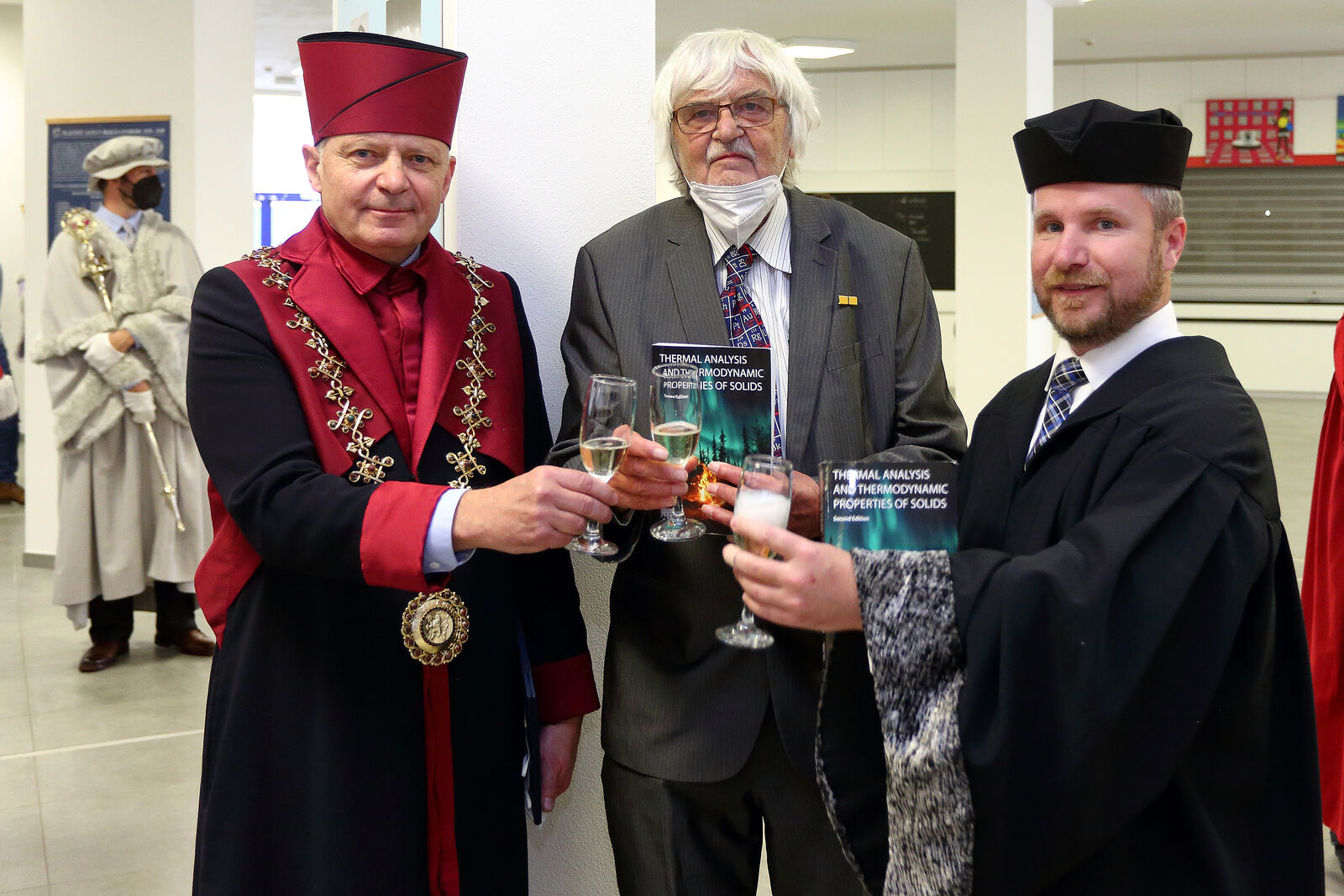 Na snímku jsou (zleva) rektor ZČU Miroslav Holeček, prof. Jaroslav Šesták a ředitel NTC Petr Kavalíř.