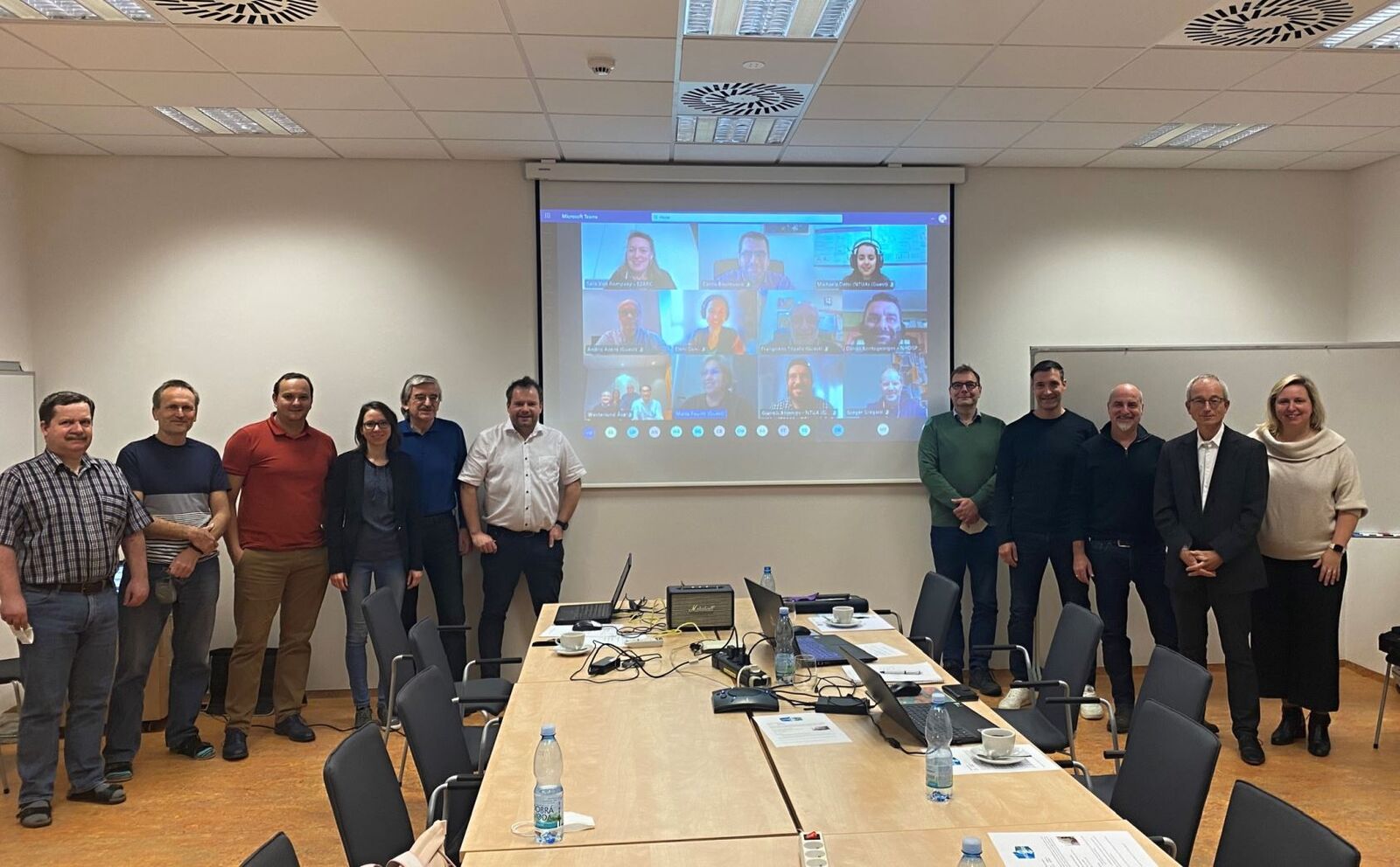 Mezi účastníky setkání řešitelů projektu Switch2Save na FAV ZČU byli také (v levé části zprava) vedoucí projektu Switch2Save Dr. Fahlteich (FhG) a vedoucí týmu katedry fyziky prof. Jaroslav Vlček.
