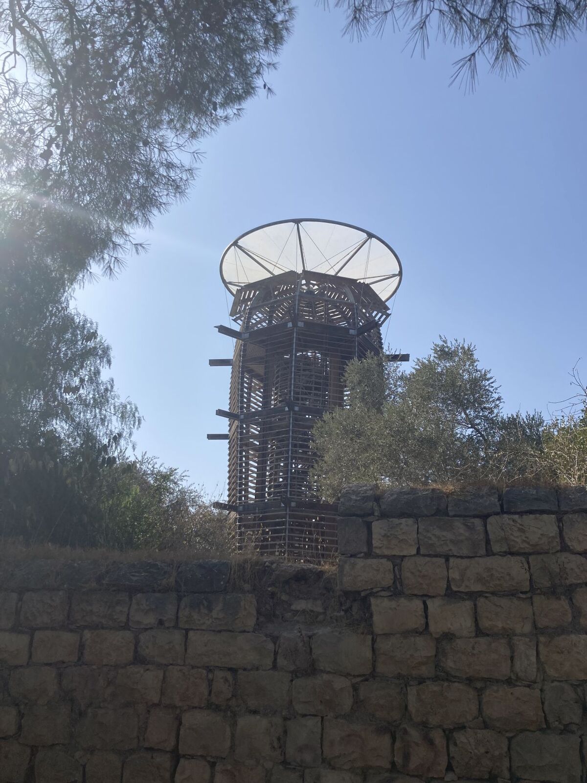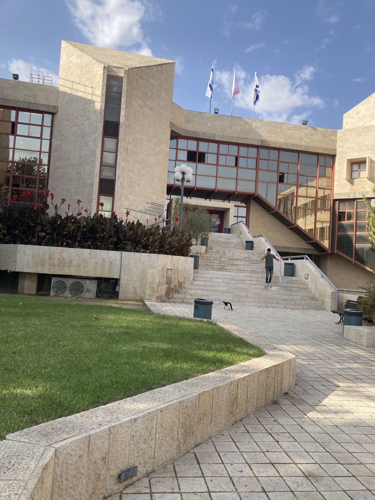 stojí na kopci Mount Scopus v Jeruzalémě, z jedné strany s nádherným výhledem