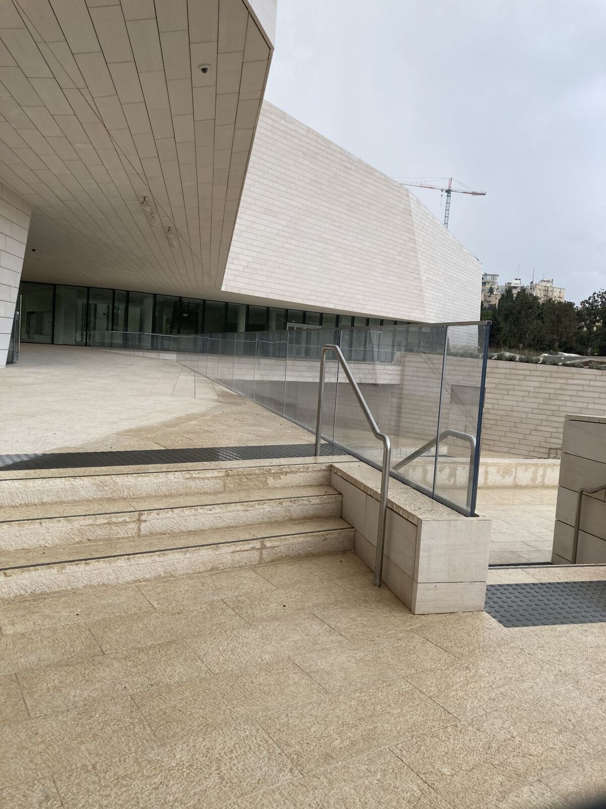 Hlavní vchod do Bezalel Academy of Arts and Design na kopci Mount Scopus