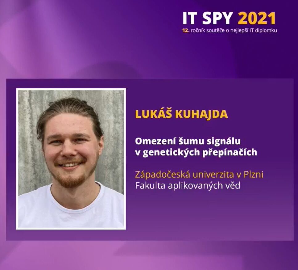 „Cílem mé práce bylo vytvořit pomocí neuronové sítě nástroj, který by pomohl genetickým inženýrům s efektivnějším získáváním jedné součástky pro genetické obvody. Tou součástkou je genetický spínač. V syntetické biologii je obecně problém s nízkou úspěšností experimentů navržených na počítač. Stejně tak je tomu i zde, kdy vytvoření dobrého spínače je dle aktuálních metod jak časově, tak finančně náročné a výsledky nebývají přenositelné na tvorbu dalších konstruktů,“ přiblížil Lukáš Kuhajda své téma. „V diplomové práci se mi podařilo natrénovat nově navržený model neuronové sítě, na základě jehož výstupu jsem v laboratoři sestavil odpovídající DNA. Tím jsem vytvořil pět genetických spínačů. Při laboratorním měření byla následně získána dobrá míra spínání ve třech z pěti konstruktů, což je velmi dobrý výsledek. Měřením se tak potvrdila funkčnost natrénovaného modelu, který byl pro diplomovou práci sestaven od návrhu data setů až po celou architekturu sítě. Jedná se o první zdárné využití neuronových sítí pro řešení této těžké expertní metody a nástroj tak postupně směřuje k využitelnosti pro genetické inženýry po celém světě,“ uvedl.