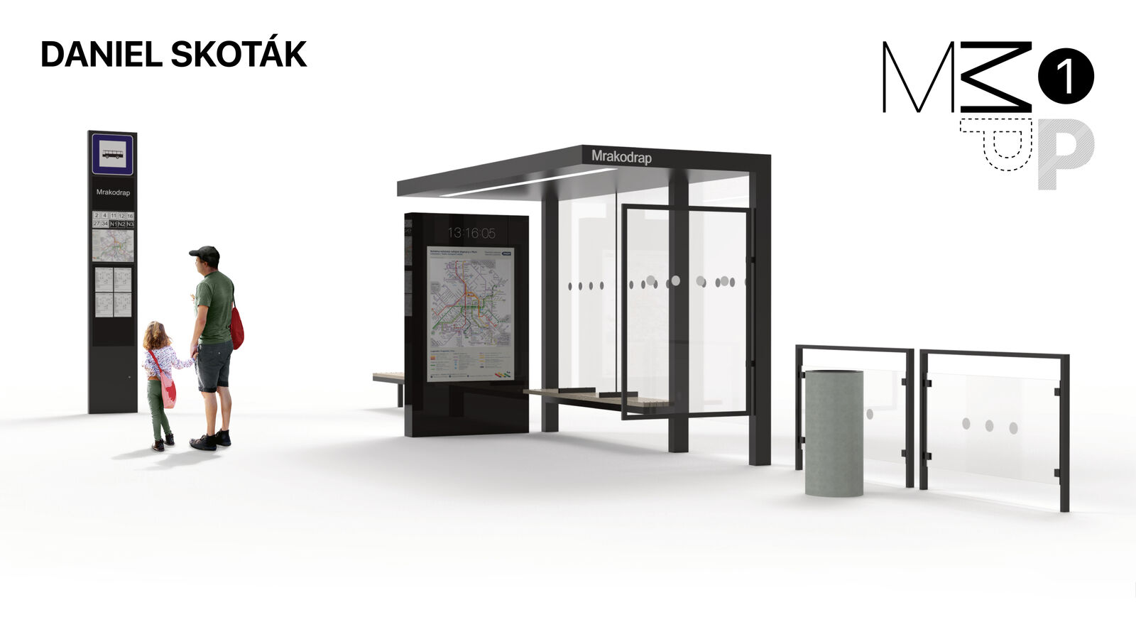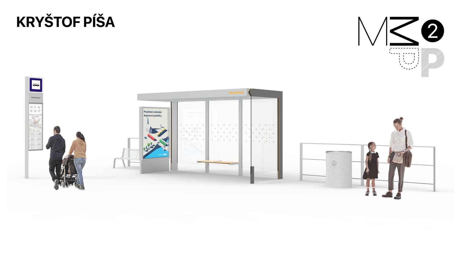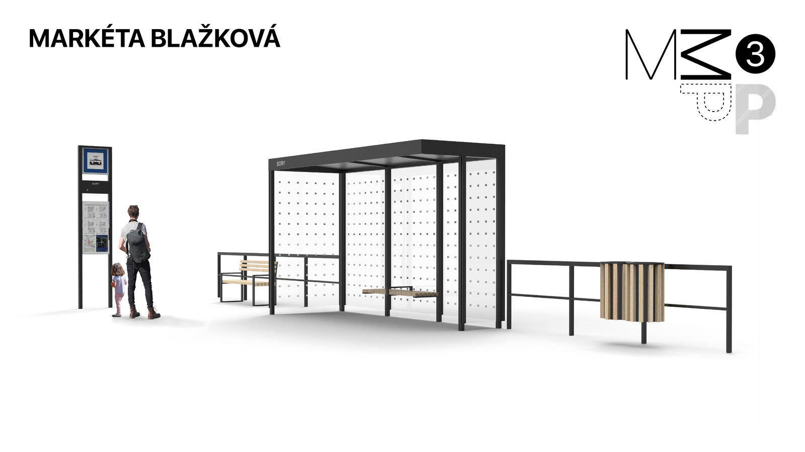 tedy zahrnuje zastávkový přístřešek, označník, panely pro dopravní informace a