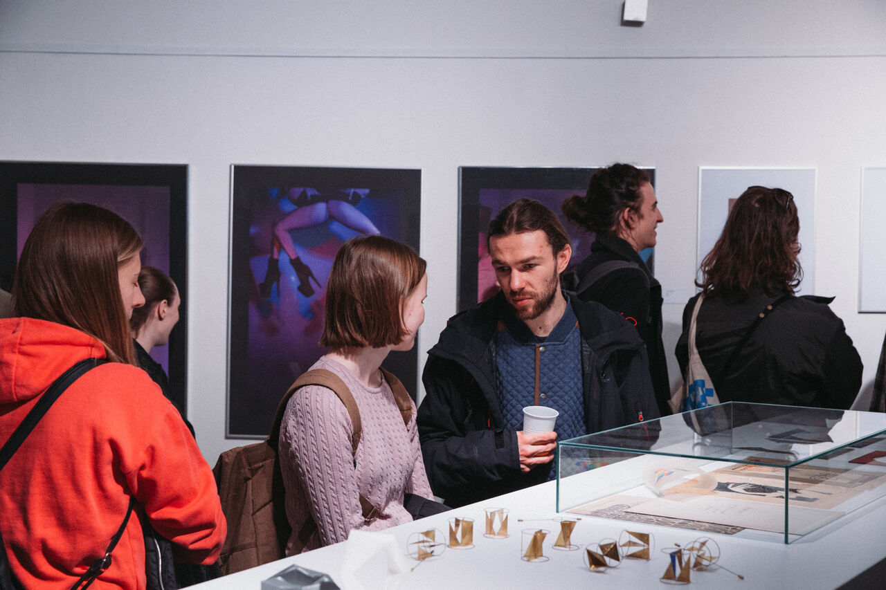 K viděné jsou díla, která vznikla pod vedením Štěpána Grygara v ateliéru Fotografie, v ateliéru Fashion design pod vedením Heleny Krbcové a v ateliéru Kov a šperk pod vedením Petra Vogela. Studenti a absolventi vystavují své práce po boku studentů grafického designéra Stevena Hellera z newyorské School of Visual Arts. Součástí budou také dosud neprezentované Sutnarovy originály: fotografické materiály, malby, skici a návrhy.