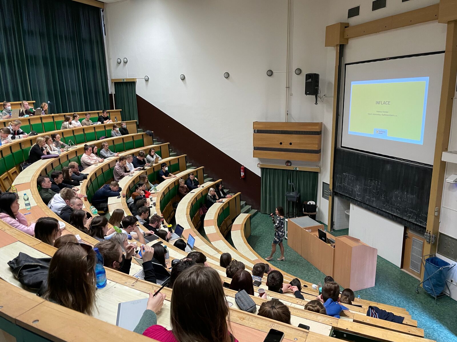 Helena Horská přednášela studentům bakalářských i magisterských studijních programů na téma Inflace a predikce jejího dalšího vývoje. „Když jsme loni v létě domlouvali s vedením vaší fakulty tuto přednášku, ani jsme netušili, jak horké a aktuální téma to nakonec bude,“ začala mimo jiné svoji přednášku. Během ní taktéž zdůraznila fakt, že zatímco před několika měsíci rostly ceny jen u některých položek spotřebního koše a běžný spotřebitel, pokud nekupoval alkohol či cigarety, růst takřka nezaznamenal, nyní nás zasáhla inflace plošná, kterou pocítila celá populace. Shrnula důvody současného růstu spotřebitelských cen a jaký vliv na něj mohou mít aktuální geopolitické události a též připomněla, co obnáší být ekonomickým analytikem.