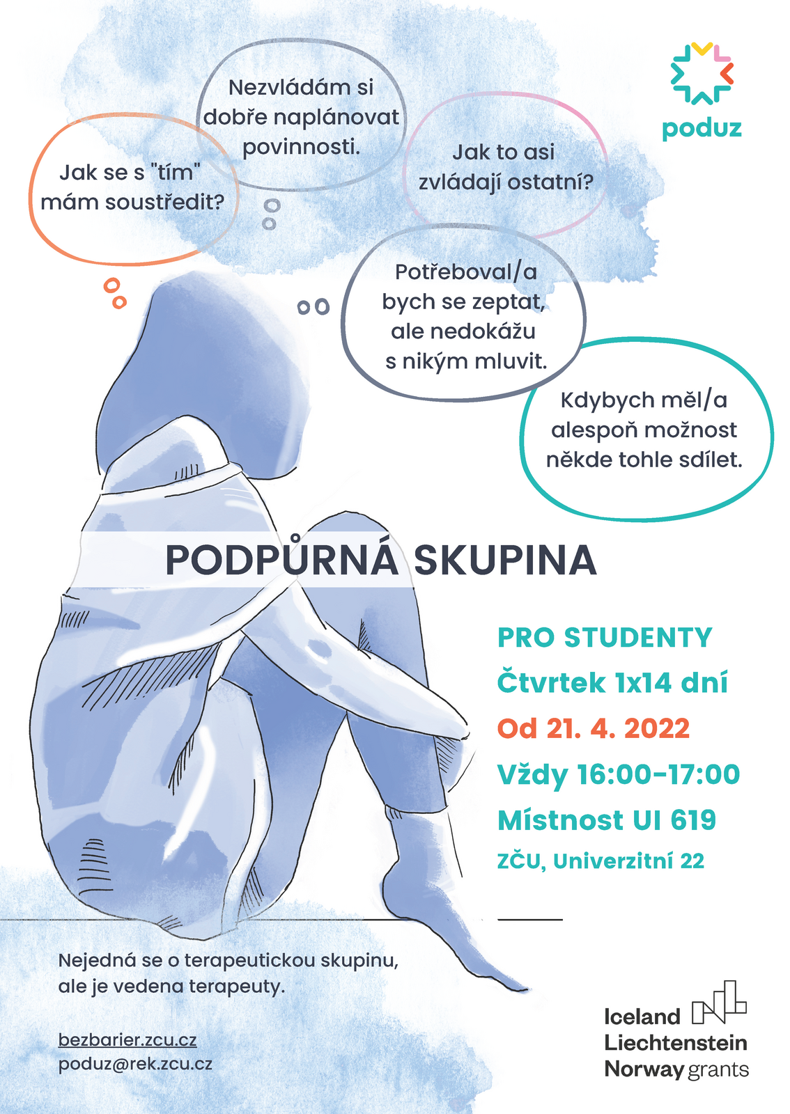 Informační a poradenské centrum ZČU nabízí studentům Západočeské univerzity pomoc v těžkých chvílích. Otevírá pro ně Podpůrnou skupinu. "Cítíš, že bys rád sdílel své těžkosti s někým, komu můžeš věřit, kdo ti může pomoci a dál tě nasměrovat, jak zvládat složité situace či duševní krizi? Potom je tu pro tebe prostor podpůrné skupiny," obrací se centrum na studenty.