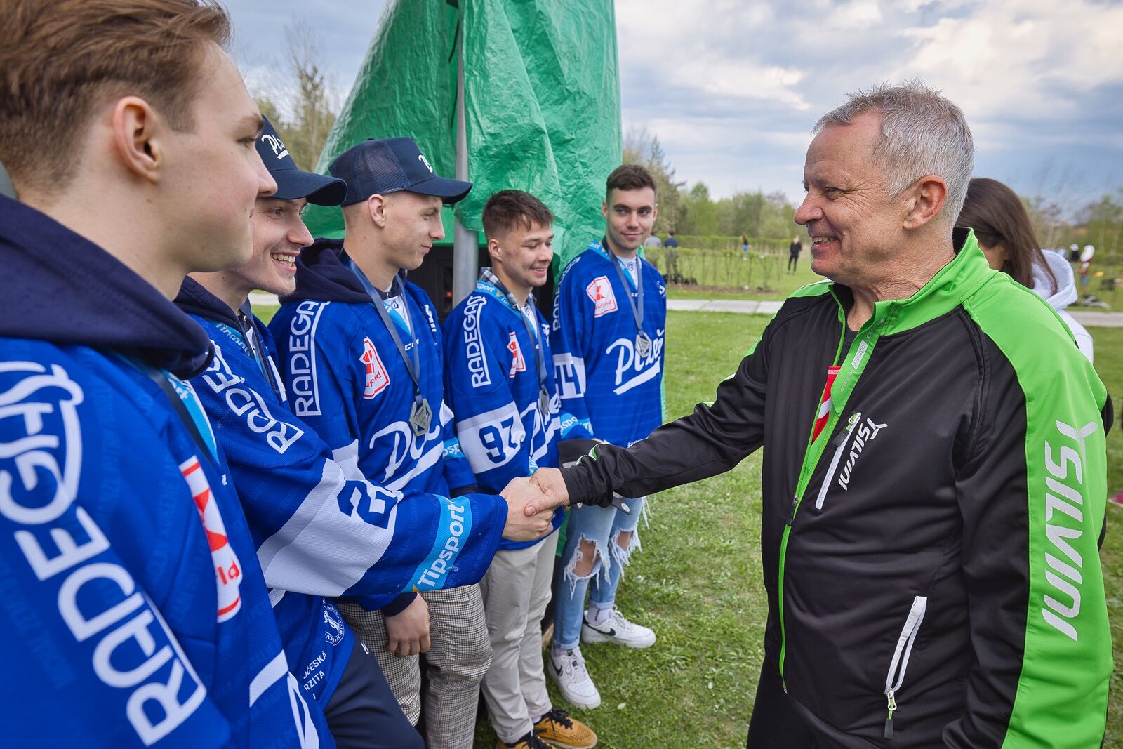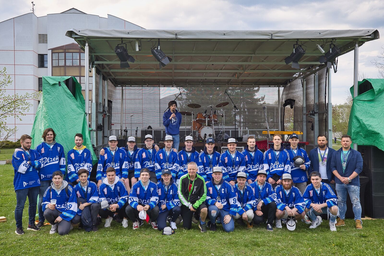 Kampus ZČU ale letos na pódiu přivítal také hokejisty týmu ZČU Akademici Plzeň, kteří se dostali až do finále prvního dokončeného ročníku Univerzitní ligy ledního hokeje a změřili síly s hráči UK Hockey Prague Univerzity Karlovy. Mistrovský titul i Pohár Jana Palacha sice nakonec připadl Pražanům, ale Akademici, kteří původně k jasným favoritům nepatřili, získali stříbrné medaile, s nimiž na Běh s rektorem také dorazili. Rektor Miroslav Holeček týmu poděkoval za skvělou reprezentaci Západočeské univerzity a hráčům předal čepice z jedinečné kolekce oblečení #Copatutoje, která spojila ZČU s městem Plzní a značkou Horsefeathers.