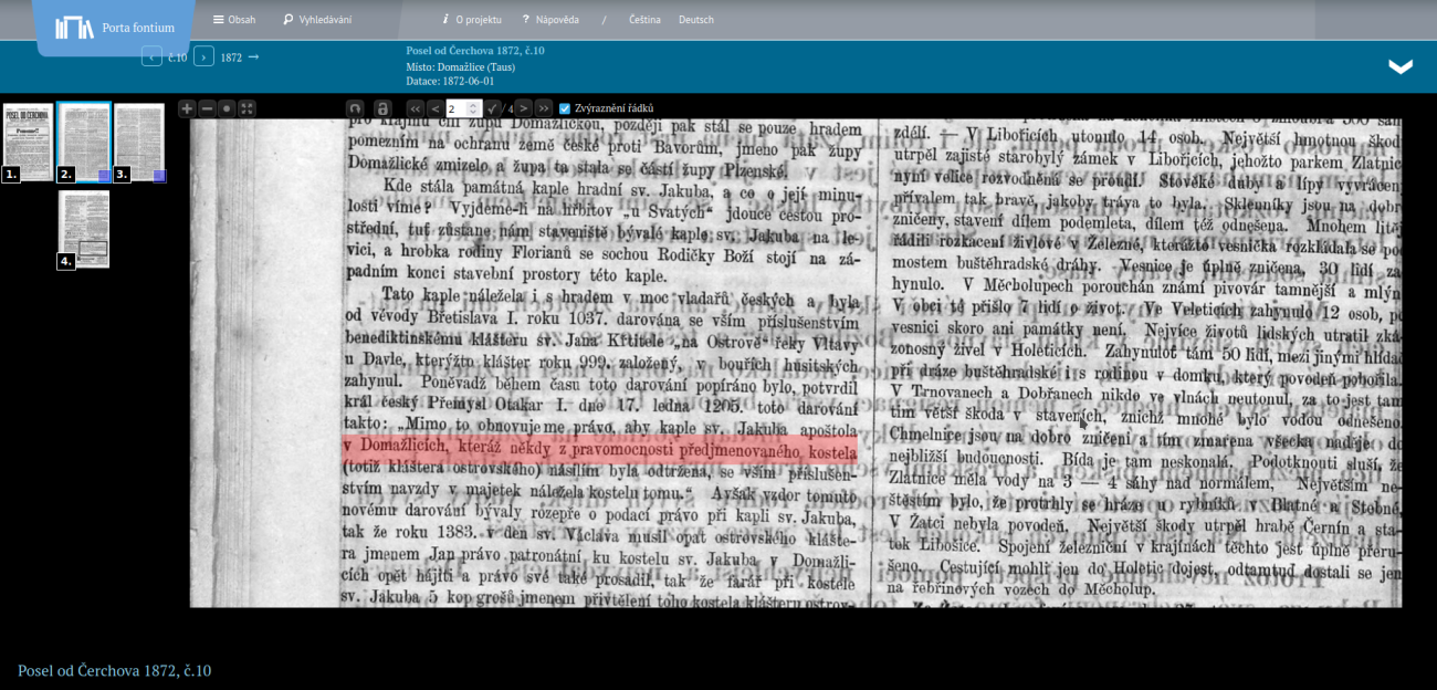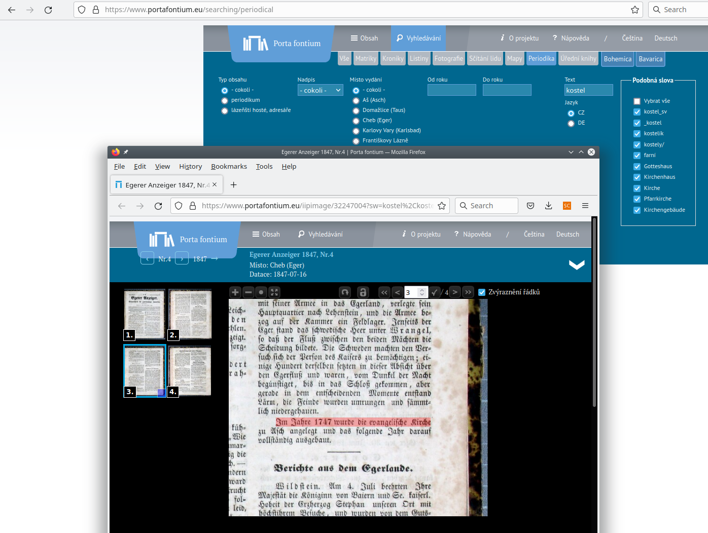 Projekt Moderní zpřístupnění historických pramenů 2018–2021, podpořený z programu přeshraniční spolupráce Česká republika – Svobodný stát Bavorsko, stojí na ojedinělé spolupráci odborníků z Česka a Bavorska z oblasti historie, stavebně historického průzkumu, archivnictví a informatiky. Ta umožnila rozšířit portál Porta fontium jak o nové typy archiválií, jako jsou mapy a plány, tak o možnost z těchto a dalších obrazových dokumentů efektivně získávat požadované informace. Díky technologii automatického zpracování tištěných i rukopisných dokumentů odborníků z FAV lze totiž vyhledávat ve všech typech pramenů, včetně map, naskenovaných rukopisných textů nebo fotografií.