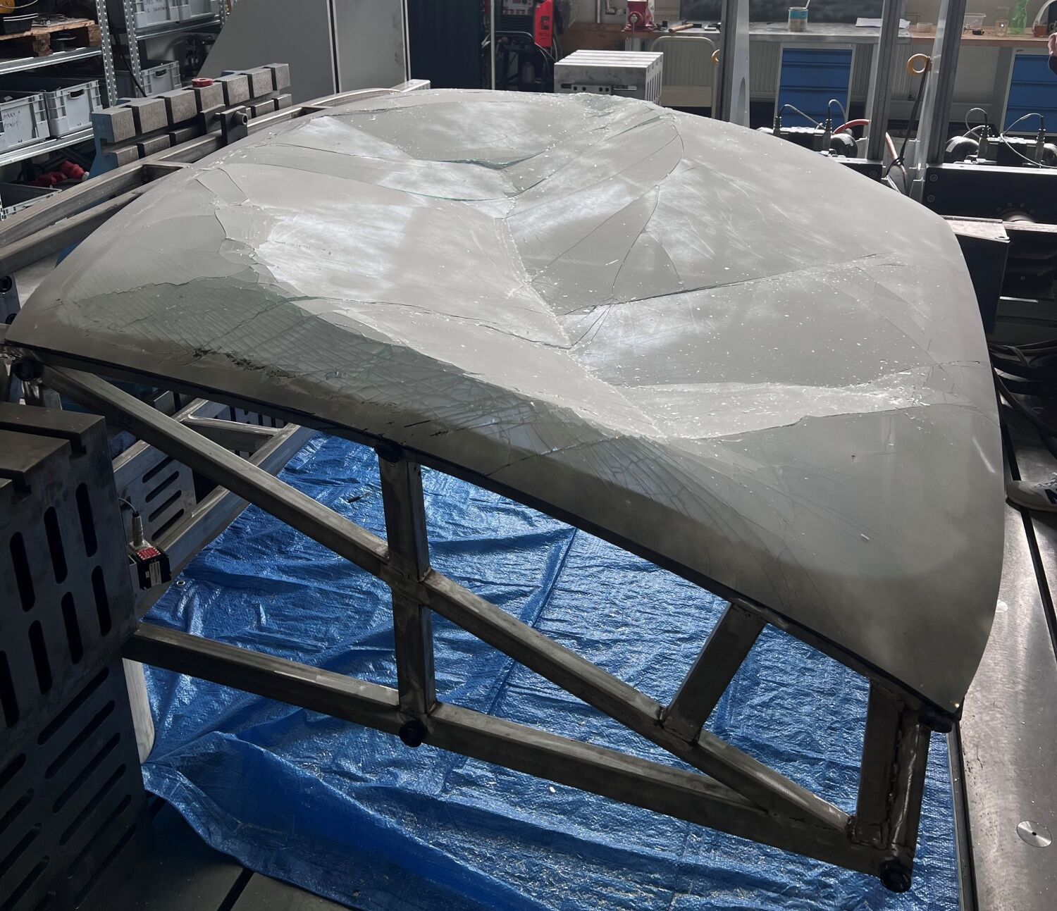 Při testech v RTI byly rozměrné konstrukční části karoserií deformovány předepsanou rychlostí a v předepsaném směru. Jeden takový test se uskutečnil už vloni, šlo o deformační zkoušku segmentu střechy vylehčené lepenými sendvičovými panely, letos následoval deformační test zaskleného čela karoserie. Těmto zkouškám předcházela řada detailních zkoušek použitých materiálů a jejich spojů, které zabezpečila Mechanická zkušebna RTI. Výzkumníkům z RTI asistovali ještě kolegové z katedry konstruování strojů Fakulty strojní, kteří průběh zkoušky skenovali.