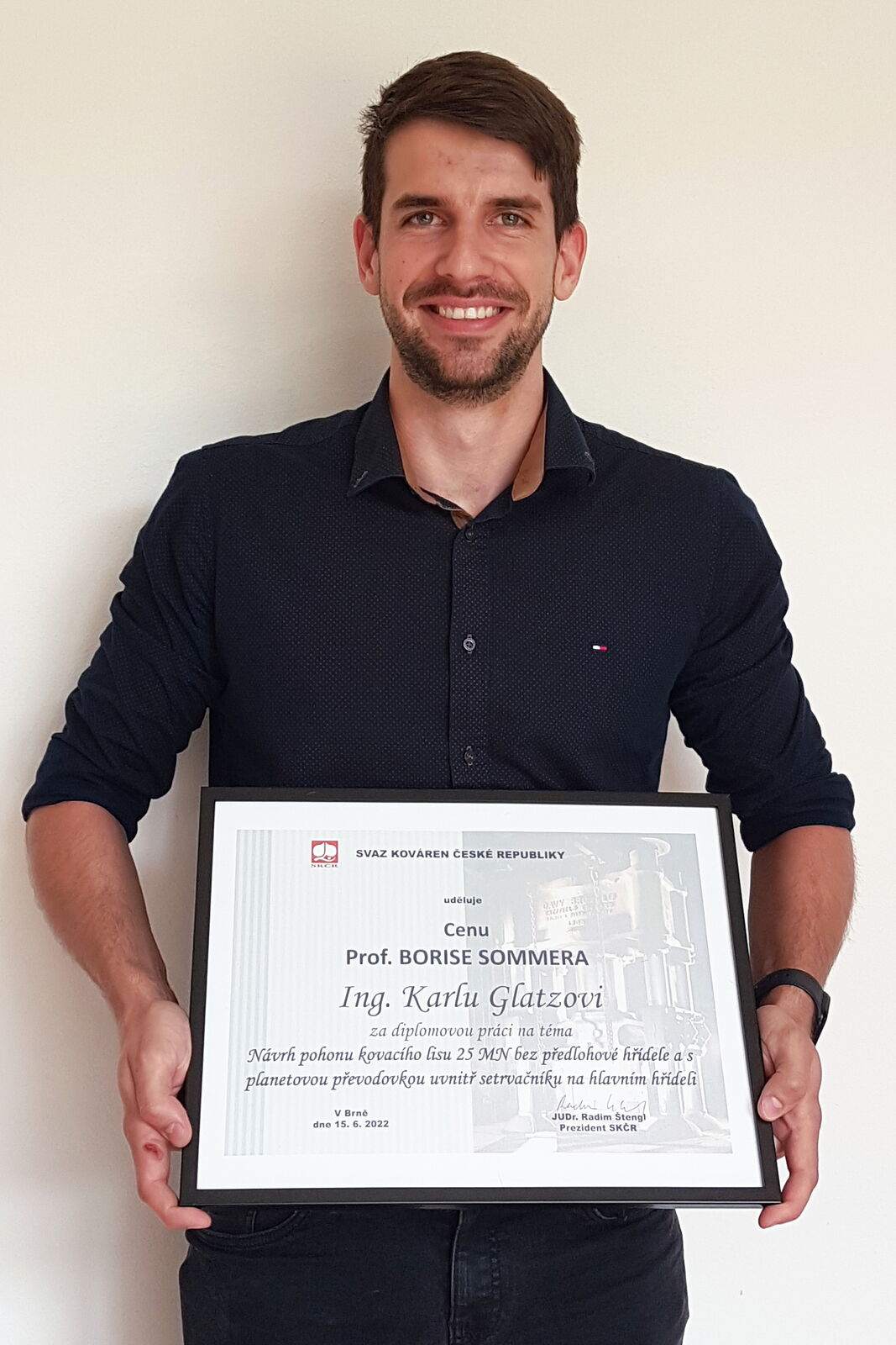 Nejprestižnější část jednacího dne byl společenský večer, v rámci kterého jsou pravidelně předávána ocenění Svazu kováren ČR. Jedním z ocenění je i cena prof. Borise Sommera, odborníka na tváření kovů z katedry tváření kovů VŠB-TUO, za nejlepší diplomové a bakalářské práce vypracované na téma spojené s kovárenstvím, obhájené v minulém roce. Mezi silnou konkurencí byla odbornou komisí letos vybrána diplomová práce absolventa katedry konstruování strojů Fakulty strojní ZČU Karla Glatze na téma "Návrh pohonu kovacího lisu 25 MN bez předlohové hřídele a s planetovou převodovkou uvnitř setrvačníku na hlavním hřídeli", zadané společností ŠMERAL Brno. Karel Glatz se předání nemohl zúčastnit, proto ocenění převzal vedoucí jeho práce Jan Hlaváč, který mu ocenění předal v Plzni.