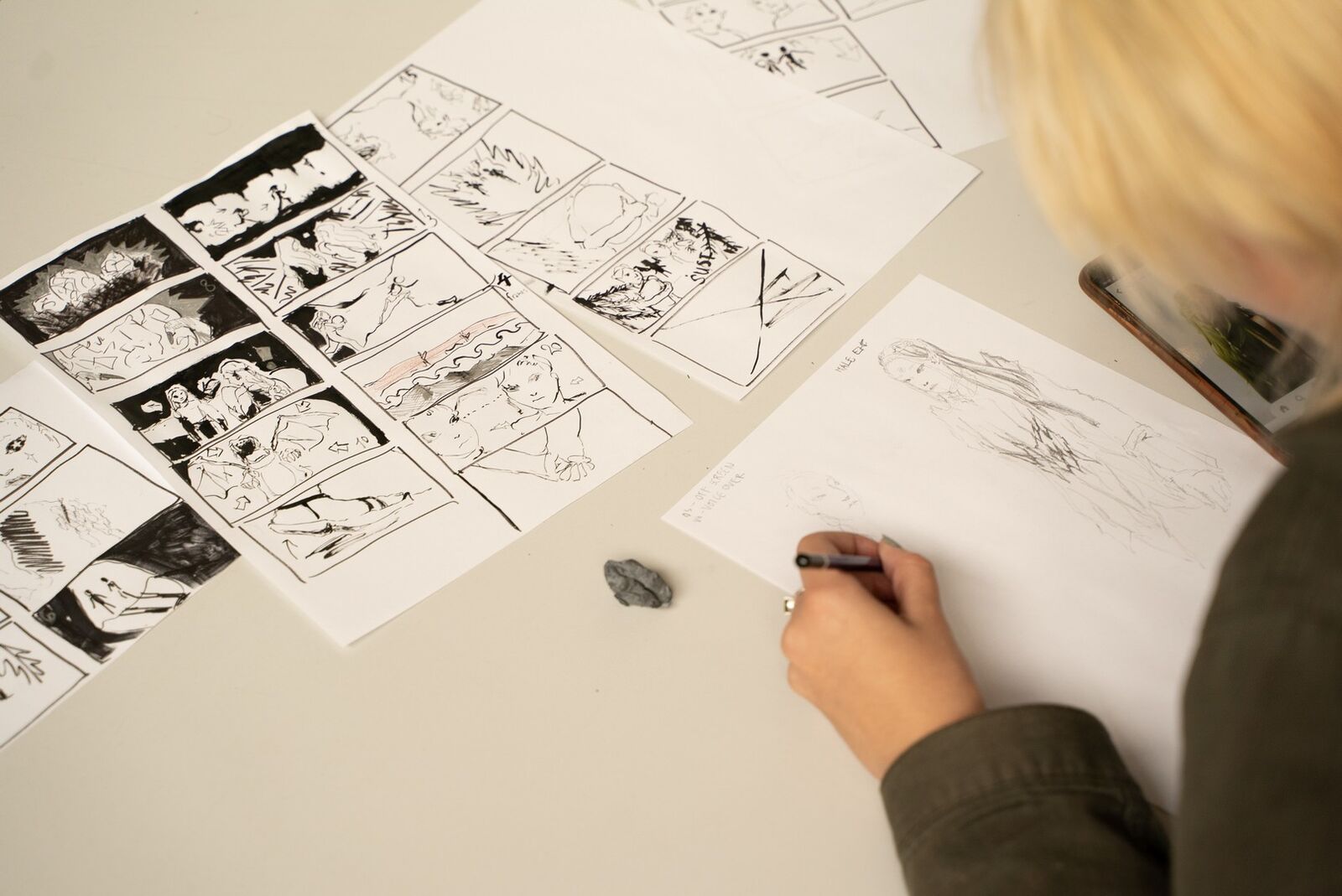 Ačkoli se pět dní může zdát jako krátká doba, účastníci kurzu stihli projít všemi fázemi přípravy storyboardu, od úvodního brainstormingu nad volbou tématu pro svůj film přes skicování a hledání lokací v terénu až po finální rozkreslení scénáře do filmových okének. I v praxi totiž storyboardisté pracují v rychlém tempu, takže zkušenost to byla velmi autentická.