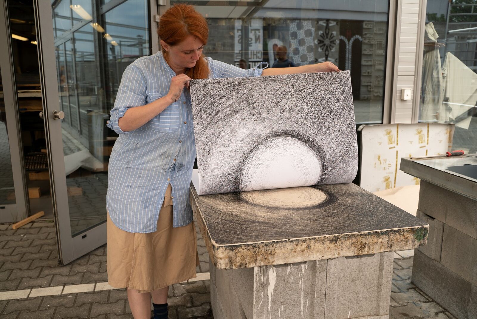 Lithography, a type of printing that uses stone plates, is one of the traditional graphic techniques taught at ArtCamp