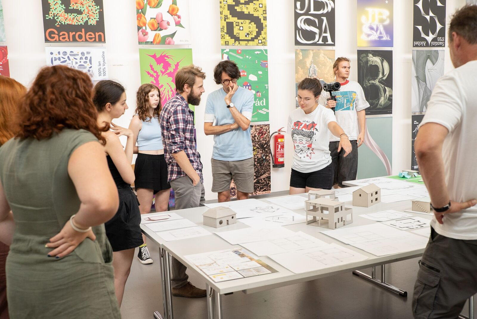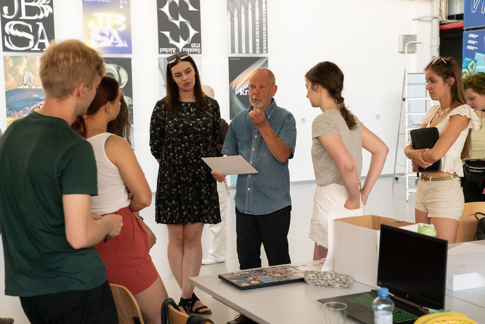 Every Friday, all participants meet at a collective exhibition presenting the results of their work. The afternoon atmosphere on these days is a reward after a week of hard work which requires the participants to process a lot of new information, familiarize themselves with new techniques and give their best. Concentrated work and creative silence are replaced by chatter and noise, as the artists are arranging their works for display and stroll around the other studios. At the end they receive their certificates and have to say good-bye to the new friends with whom they spent time not only in the courses but also during the accompanying activities. This year’s programme included a visit to the Adolf Loos interiors, ArtCamp Talks, evening presentations and meetings with the exceptional artists working as ArtCamp instructors, as well as visits to various exhibitions and tours of Pilsen. We also organized a joint opening party at the Sutnar Faculty for the participants of the ArtCamp and the International Summer Language School, and attended the opening of the Original Loiri exhibition at the Ladislav Sutnar Gallery, which presented the oeuvre of the Finnish graphic designer and ArtCamp guest Pekka Loiri.