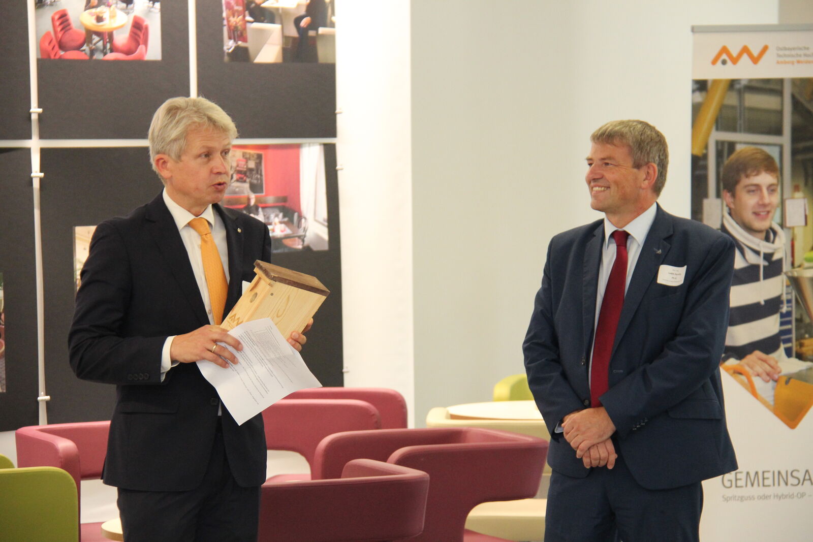 Ten za OTH Amberg-Weiden dodatečně daroval Západočeské univerzitě k jejímu loňskému 30. výročí 30 ptačích budek. „Ptačí budka poskytuje mláďatům teplo, bezpečné hnízdo, aby mohli vyrůst. Takové hnízdo nacházejí mladí lidé u svých rodičů, ale také na své univerzitě. A jak ptáče roste, naroste mu peří, začne létat a jednoho dne vyletí z hnízda natrvalo, najde si jinou ptačí budku nebo si postaví hnízdo nové. To platí i pro naše studující. A dnešní akce se koná také proto, abychom je společně podpořili právě v tomto procesu, kdy opouštějí svoji univerzitu a začínají budovat svůj profesní život,“ vysvětlil symbolický význam daru Clemens Bulitta.