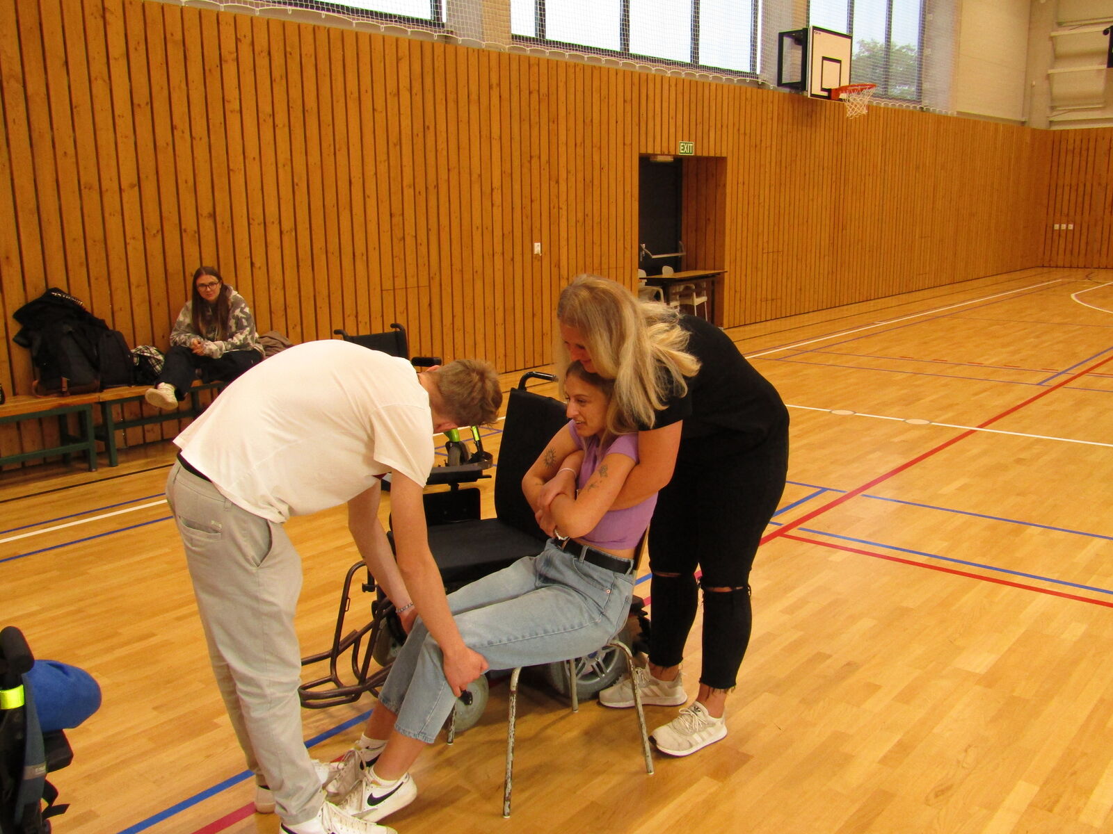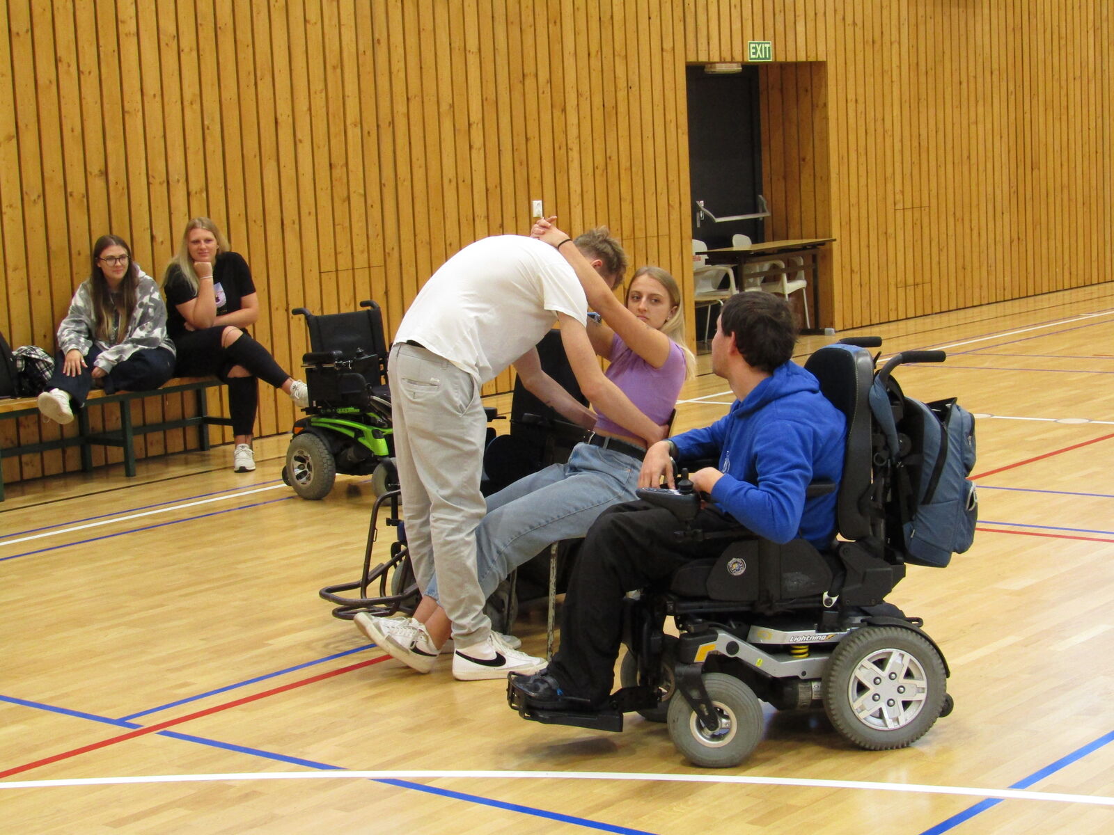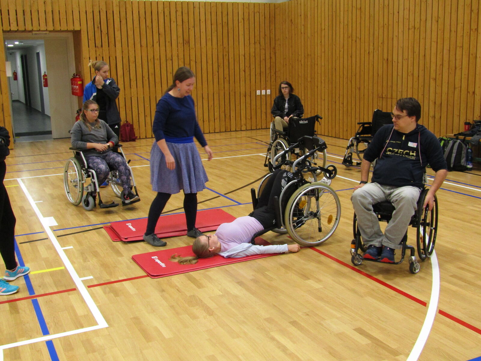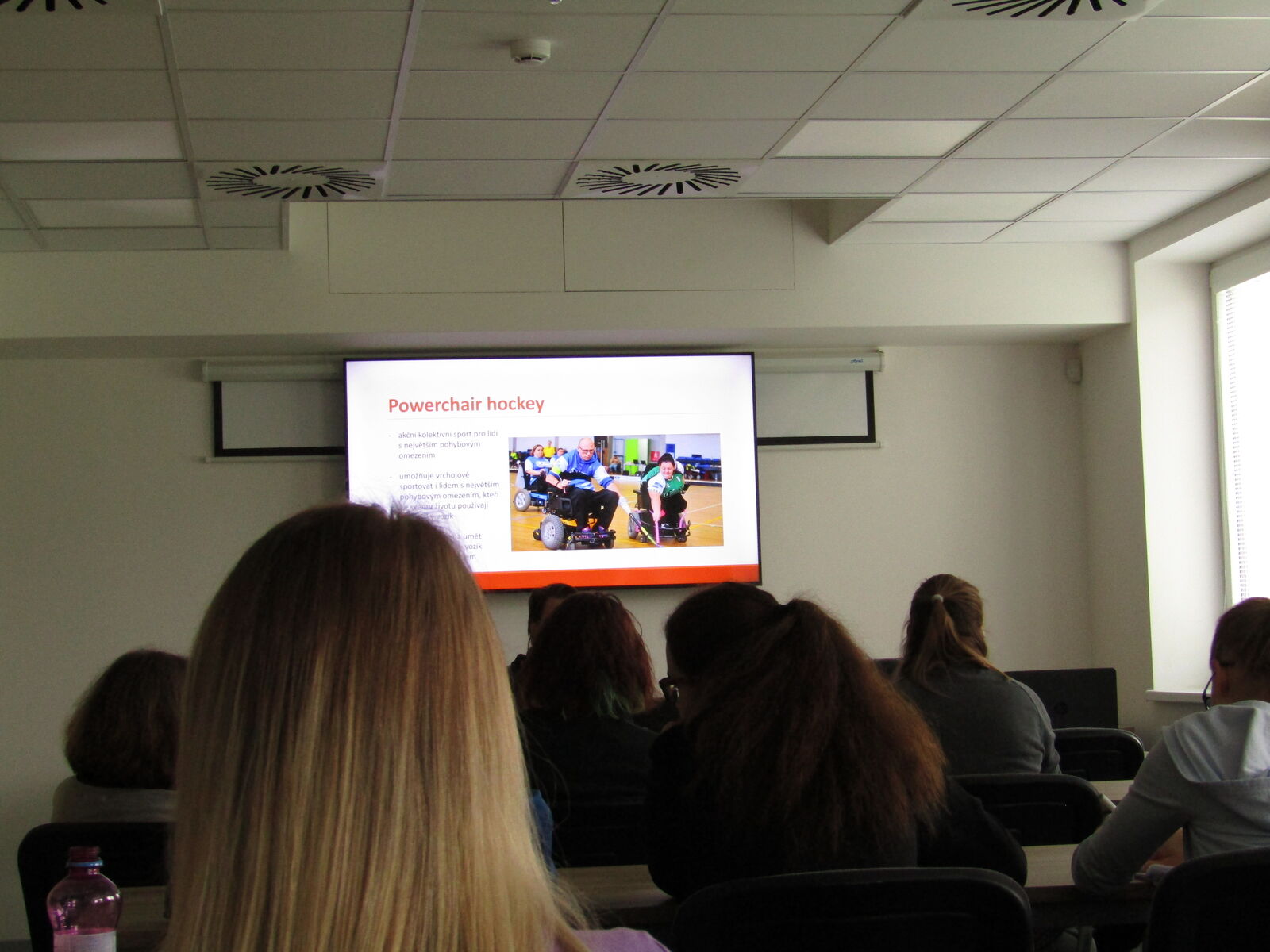 Studentky a studenti si v pátek poslechli teoretickou část skládající se z prezentace Powerchair Hockey a prezentace fyzických handicapů. Akci navštívili i známí sportovci jako paralympijský reprezentant Michal Enge, který jim i prakticky ukázal, jak vypadá kruhový trénink hodu kuželkou. Všichni si tak na vlastní kůži vyzkoušeli, jaké to je, být v roli vozíčkáře a zároveň i jeho asistenta. Naučili se přemístit hendikepovaného z vozíku na jiný vozík, zvednout jej ze země v případě pádu, jízdu po nerovném povrchu apod.