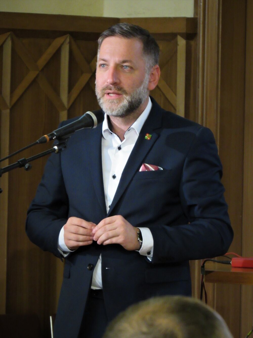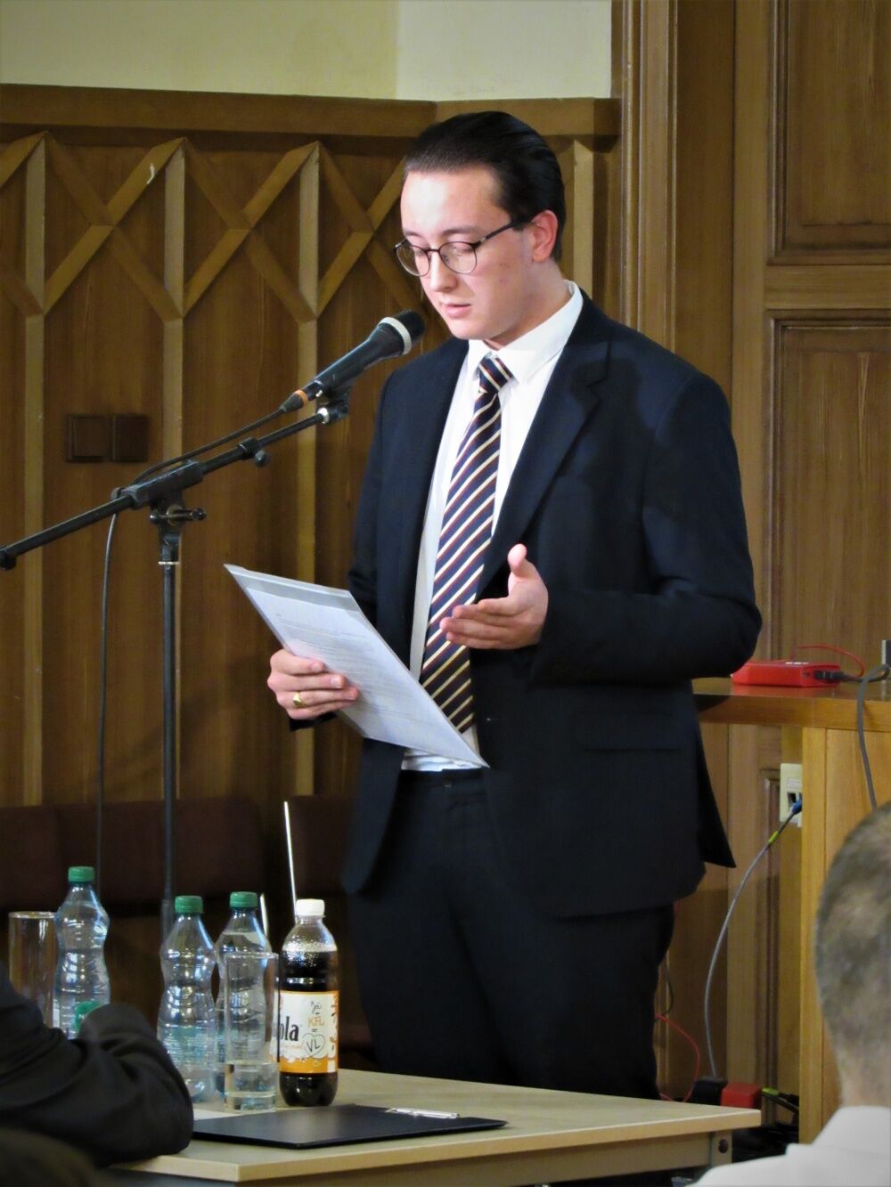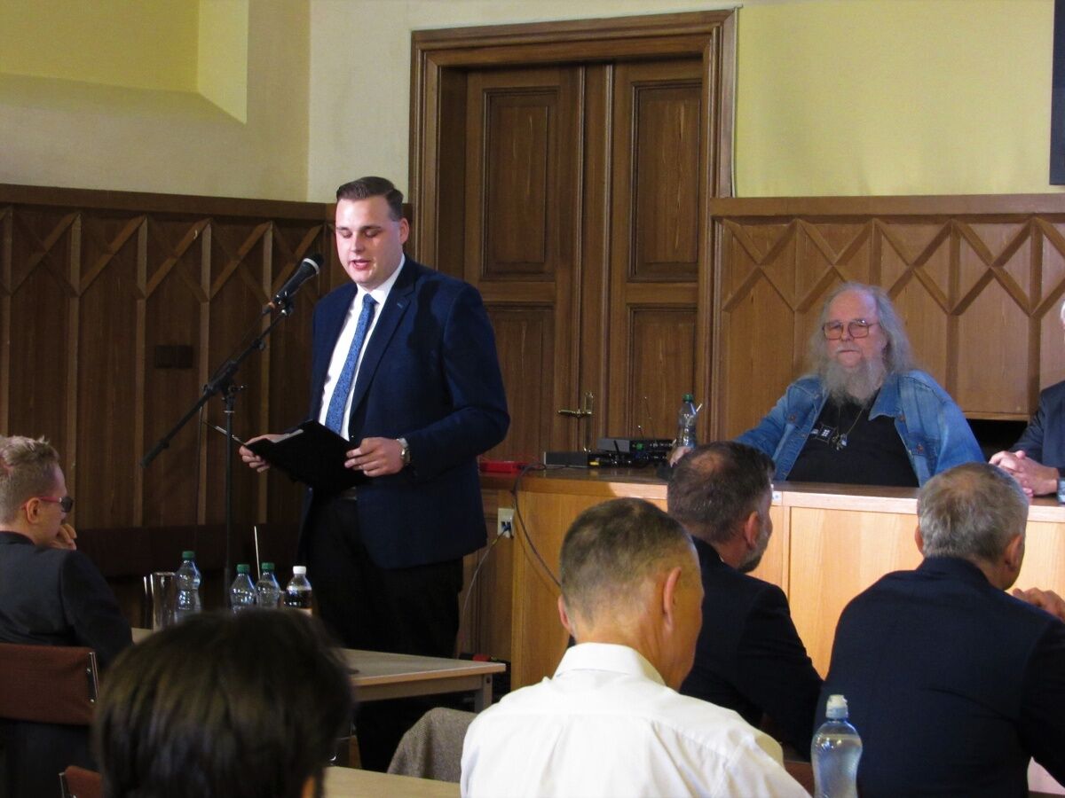 Přítomné přivítal Dominik Schejbal, předseda Akademického spolku studentů politických věd v Plzni.