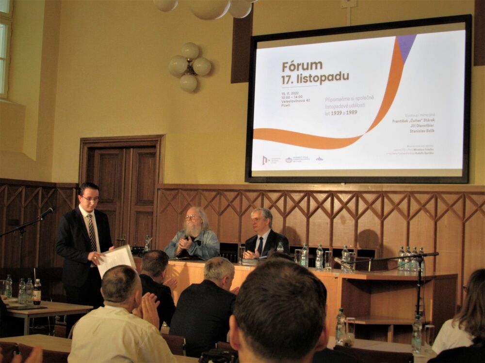 Všechny přítomné na Fóru 17. listopadu přivítali zástupci organizátorů – předseda Akademického spolku studentů politických věd v Plzni Dominik Schejbal a prezident ELSA Plzeň Antonín Knittich.
