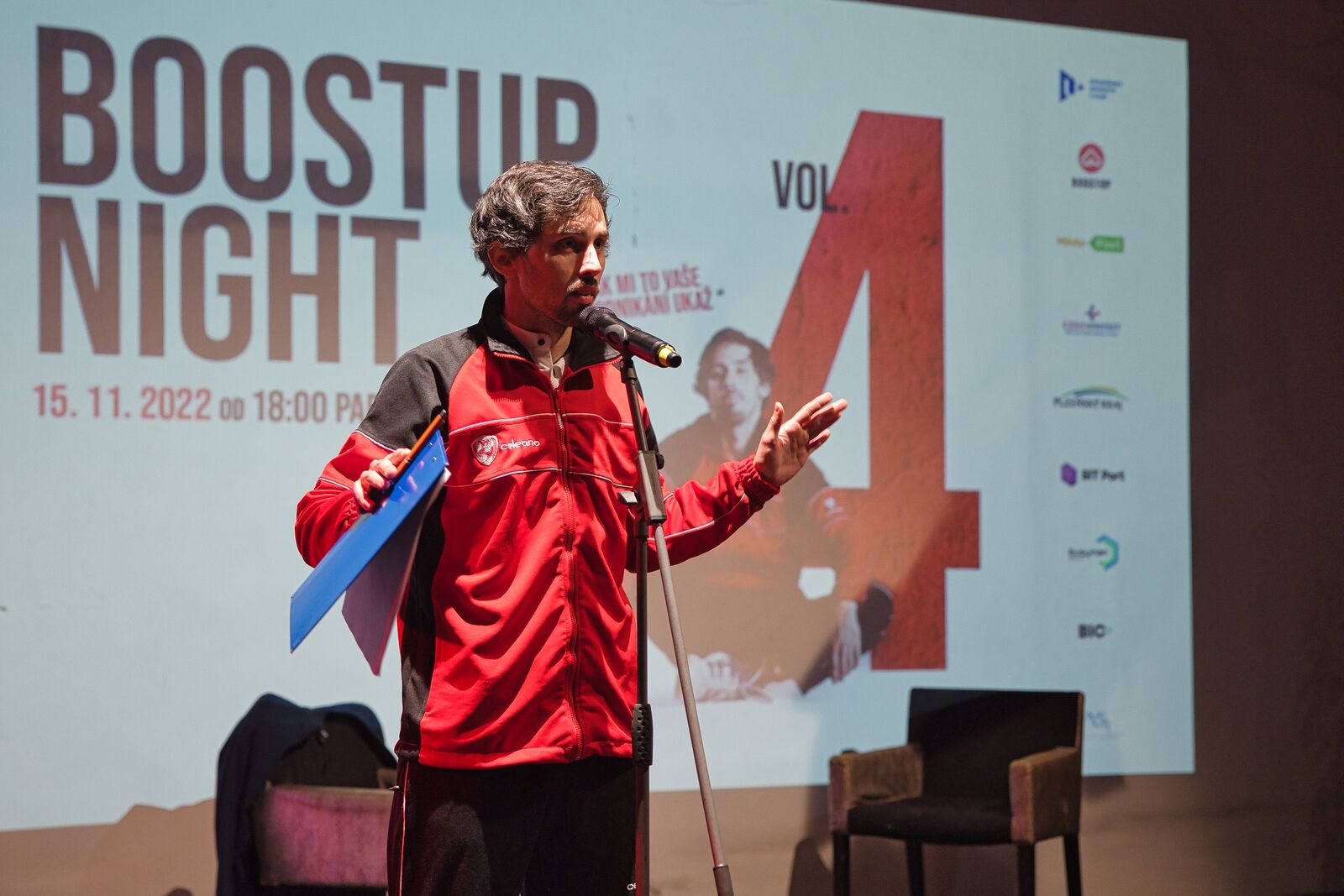 Večer odstartoval první host letošního ročníku, Jonáš Jagerčík z Fakulty designu a umění Ladislava Sutnara Západočeské univerzity v Plzni. Nedávno zazářil v italském Janově na soutěži v oblasti elektromobility DTM Evoluzione se svým redesignem ikonické Alfy Romeo 155 DTM, získal první místo ve studentské kategorii a druhé celkové místo ze 440 účastníků, a tak měl účastníkům BoostUp Night co říct.