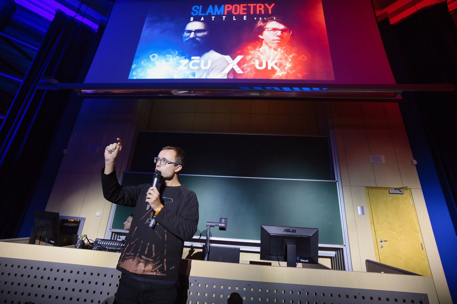 Posluchárna Fakulty elektrotechnické hostila 7. prosince už druhou vysokoškolskou bitvu ve slam poetry. Večer s názvem Slam poetry battle: ZČU vs. UK / vol. 2 Odveta dokázal místnost zaplnit fanoušky a fanynkami poezie ze Západočeské univerzity v Plzni i z Lékařské fakulty v Plzni Univerzity Karlovy. Z výsledku bitvy měli větší radost domácí, nicméně oba tábory se bavily celý večer.
