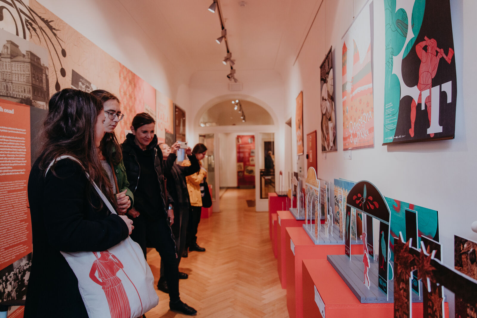 The Sutnar Faculty took the general public on the journey to the world of illustrated fairy tales through five accompanying exhibitions which took place in cooperation with important cultural institutions in Pilsen – the Puppet Museum, the Incubator Gallery and the Study and Research Library of the Pilsen Region hosted a collection of student works ranging from illustrations, comics and paper objects to dioramas and introducing both Czech and international fairy tales in their traditional and non-traditional form. The exhibition at the Great Synagogue featured illustrations of renowned Czech and international illustrators, guests of the symposium. The Ladislav Sutnar Gallery presented the work of three laureates of the Jiří Trnka Award.