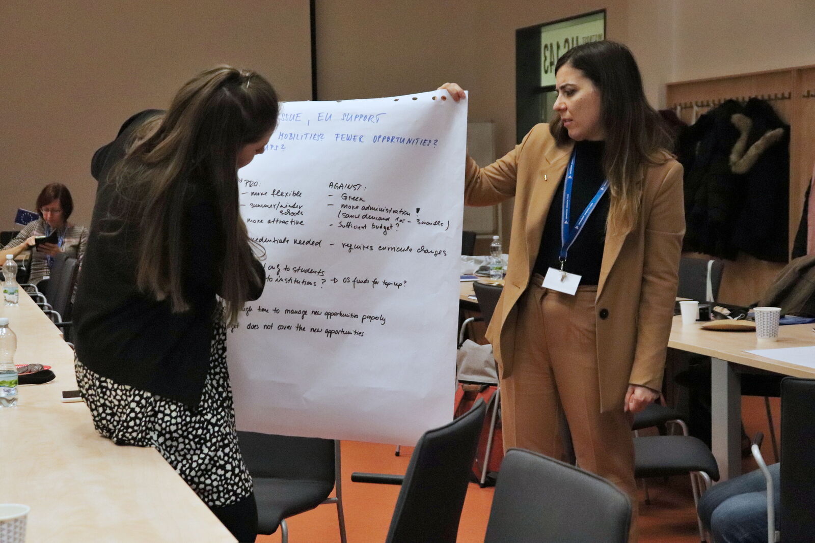 Odpoledne proběhla společná diskuse v rámci World Café. Probírala se aktuální témata, jež musí evropské univerzity momentálně řešit, například Virtual/blended mobilities – support or forget them?, EWP: implementation and digitalization of IIA, Support for refugees, Money Issue: EU Support. Závěry diskuse budou odrazovými můstky pro práci partnerských univerzit v rámci pracovního balíčku Facilitatiing Mobility, který koordinuje ZČU.