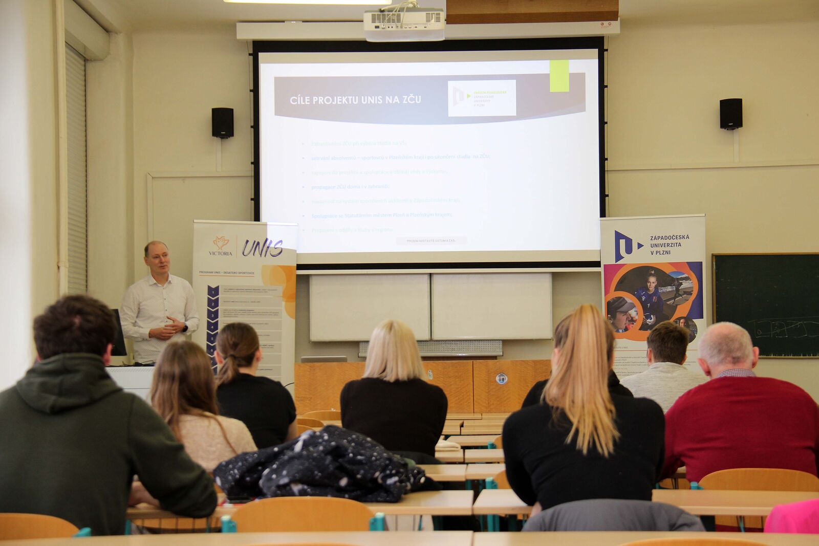 Nově přijatí sportovci a sportovkyně programu UNIS se 14. února setkali s těmi stávajícími, se zástupci Fakulty pedagogické, jejíž Centrum tělesné výchovy a sportu program koordinuje pro celou ZČU, a se zástupci partnerů. „Sešli se nově přijatí sportovci a ti, kteří jsou v programu už několik let a dokazují, že UNIS funguje. Že jsou schopni sportovat a zároveň studovat,“ řekl úvodem hlavní koordinátor Václav Salcman.